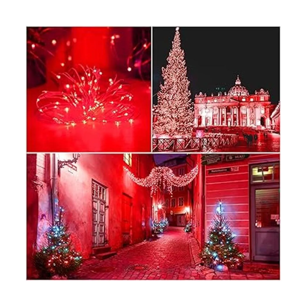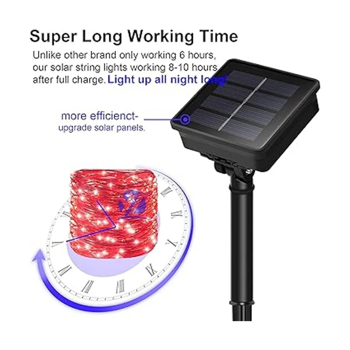 Cadena de luces solares rojas de Navidad para exteriores, impermeable, 100 LED paquete de 2, 8 modos de luces de cobre para el día de San Valentín, jardín, patio, valla, balcón, exterior rojo, 2 piezas