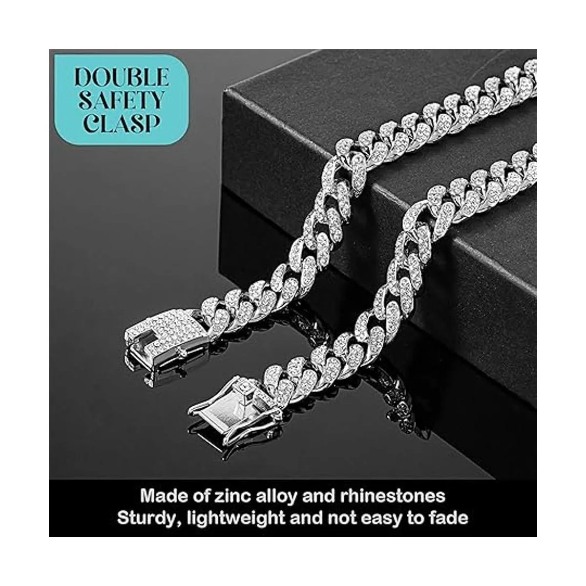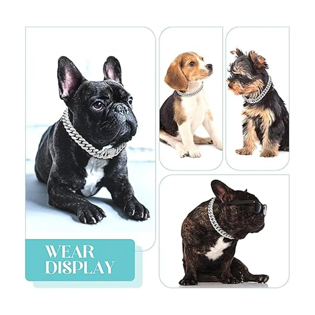 Cadena para perro, collar cubano, collar de cadena de metal con diseño de hebilla segura, accesorios de joyería para perros pequeños, medianos y grandes 14 pulgadas, plateado