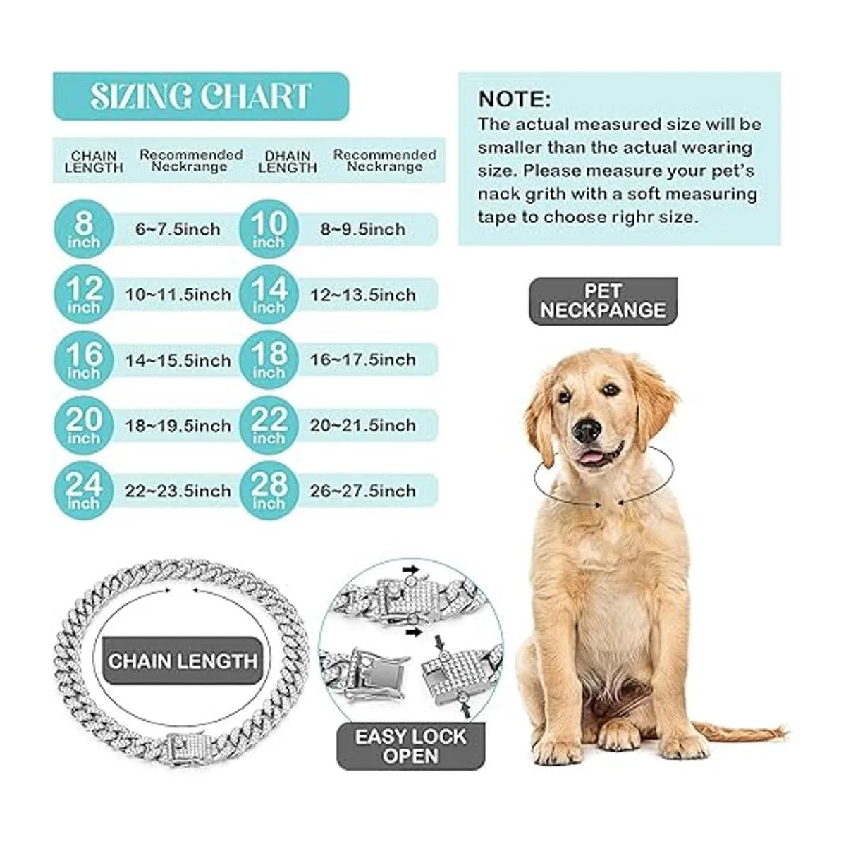 Material resistente: el collar de cadena para perro está hecho de aleación de zinc de calidad, con decoración de diamante de circonita, elegante, fuerte y no se rompe ni se decolora fácilmente, y la superficie es lisa