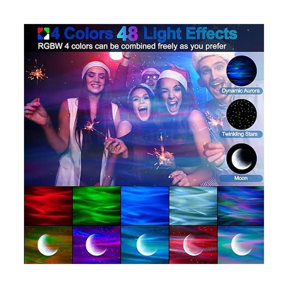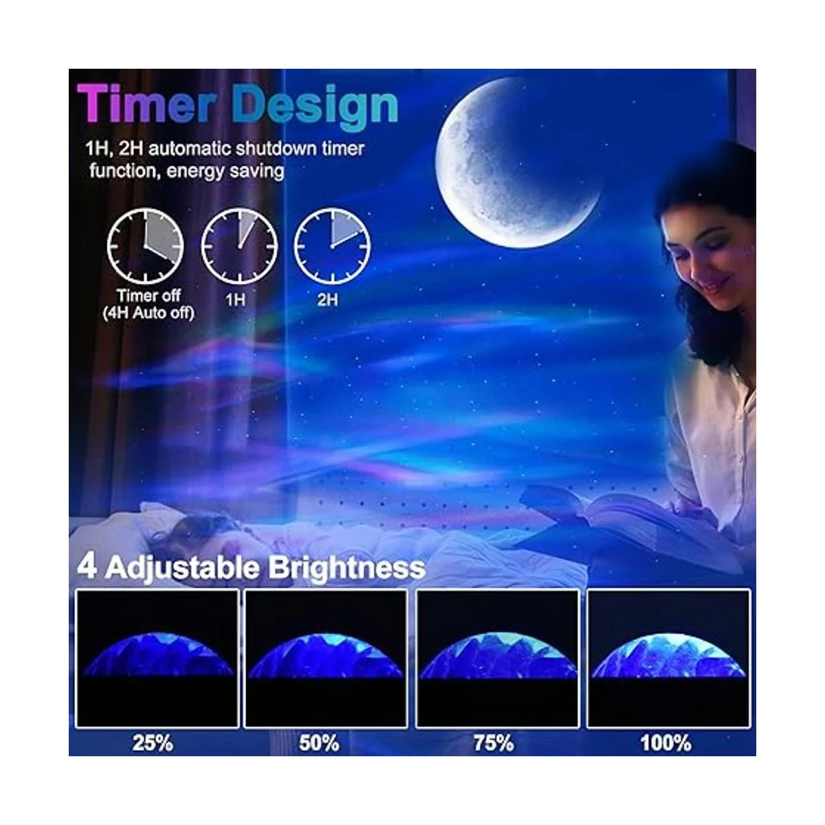 Cadrim Proyector de estrellas Aurora con luna, proyector de luces del norte para niños y adultos, altavoz Bluetooth de proyección estrellada y lámpara nocturna remota para dormitorio, techo, cine en casa, juegos, decoración de habitación