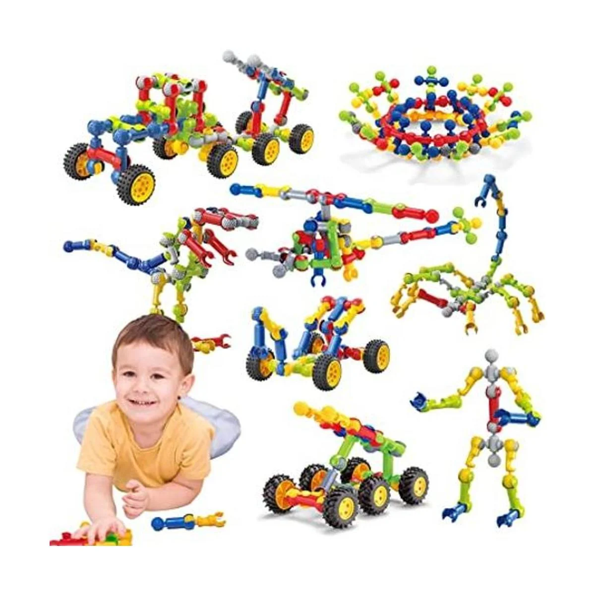 Estimula la creatividad y la imaginación: el juguete de construcción para niños está diseñado como 110 piezas, incluyendo las 6 herramientas de construcción, los bloques de construcción se pueden combinar en muchos patrones diferentes, como vehículos, robots, dinosaurios, puente cualquier cosa que los niños puedan imaginar para construir, tus hijos pueden explorar su imaginación salvaje, creatividad, coordinación ojomano con este juguete de alta calidad para niños.