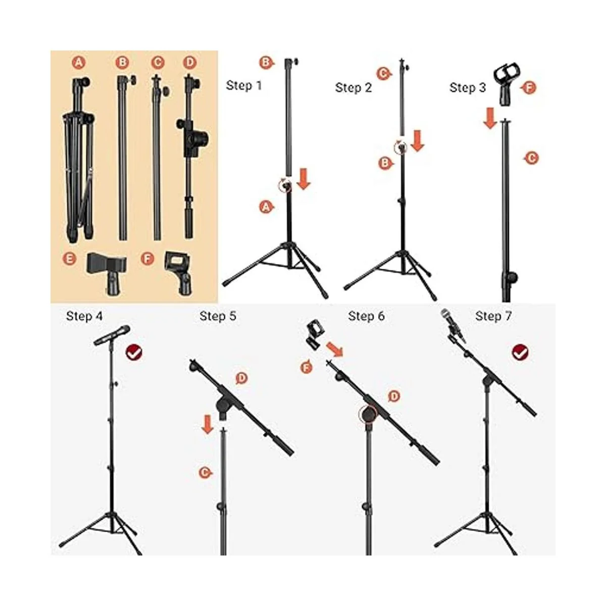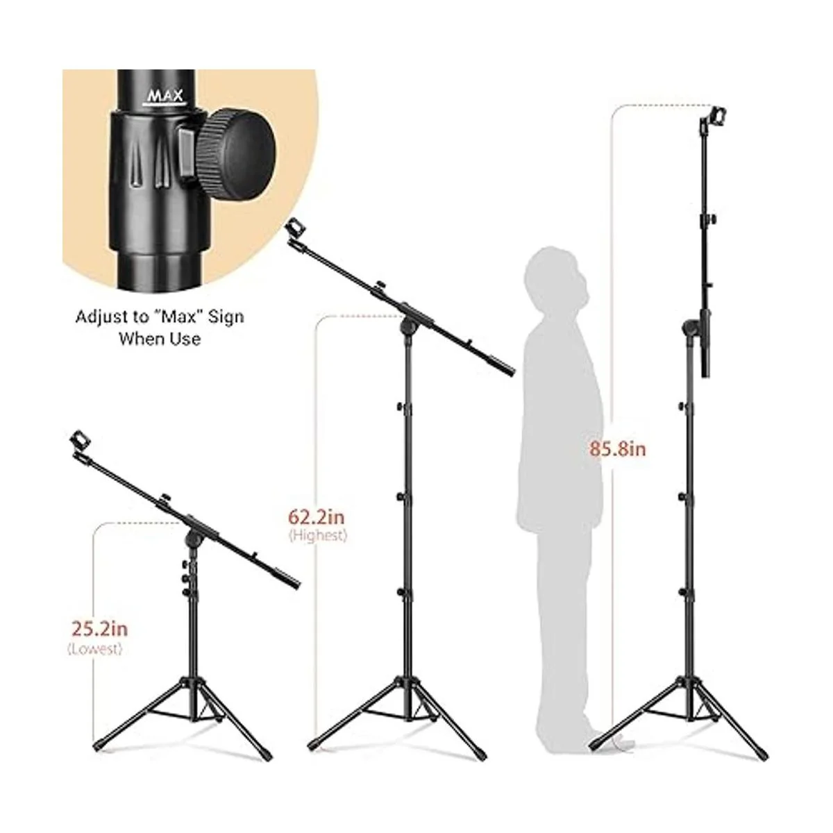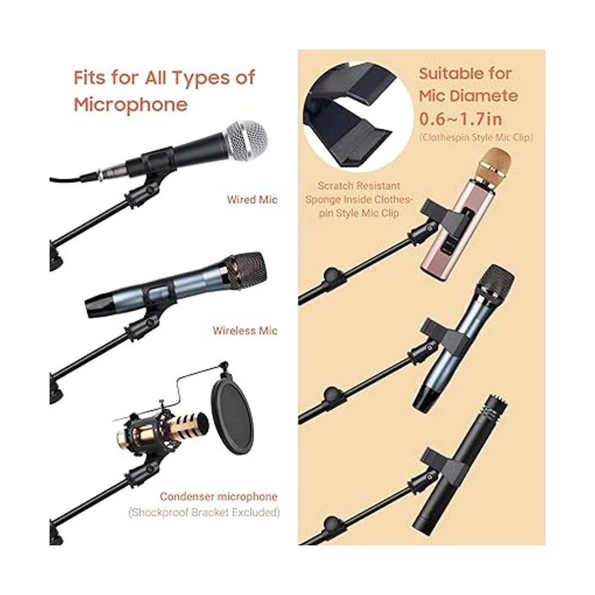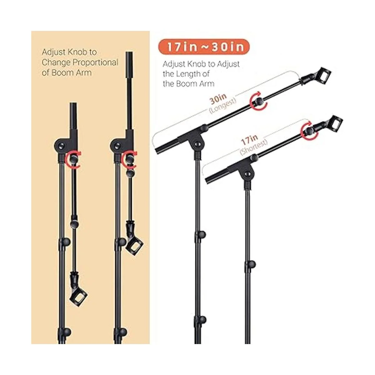 Brazo de brazo extensible y extraíble: el brazo de brazo se extiende libremente dentro de 16.9 in a 30.1 in y ángulo de 360 giratorio a través de pomos de ajuste que permiten un fácil posicionamiento. Simplemente retira el brazo del brazo y conecta el clip del micrófono para convertir el soporte del micrófono en un soporte de micrófono recto tradicional.