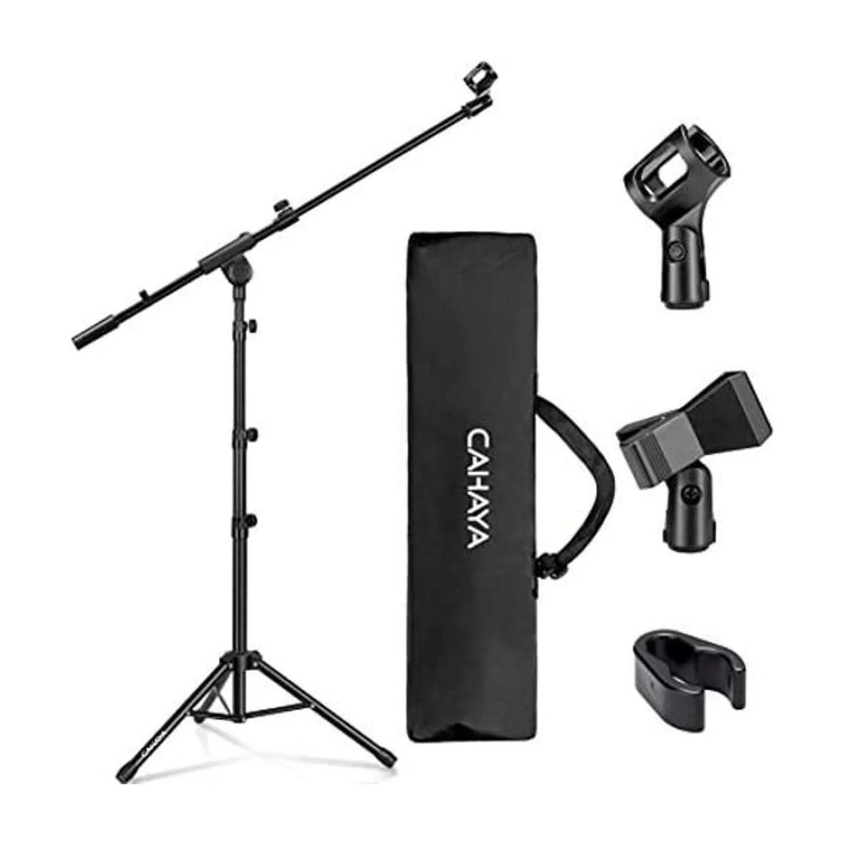 Base de trípode estable: las patas de trípode CAHAYA se extienden más allá que otras que pueden sostener el micrófono de forma segura en su lugar. La cubierta antideslizante evita que se mueva.