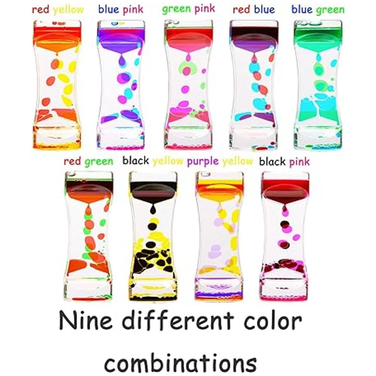 Temporizadores líquidos coloridos: cada temporizador de burbujas de movimiento líquido contiene dos colores en el interior. Ideal para un espacio de escritorio de oficina, dormitorio o incluso como recordatorio al cepillar los dientes, los colores relajantes te recuerdan que ralentizar, relajarte y disfrutar de cada momento. Cada pedido viene con 9 temporizadores de movimiento líquido, cada uno con sus propios colores únicos en el interior, lo que te da aún más opciones para jugar