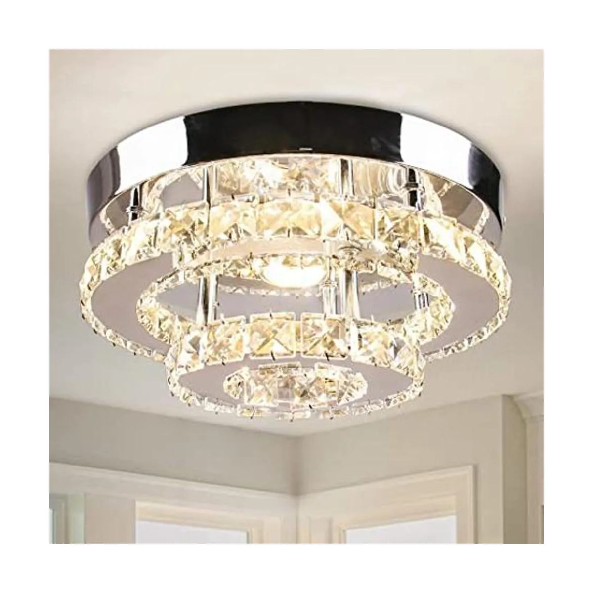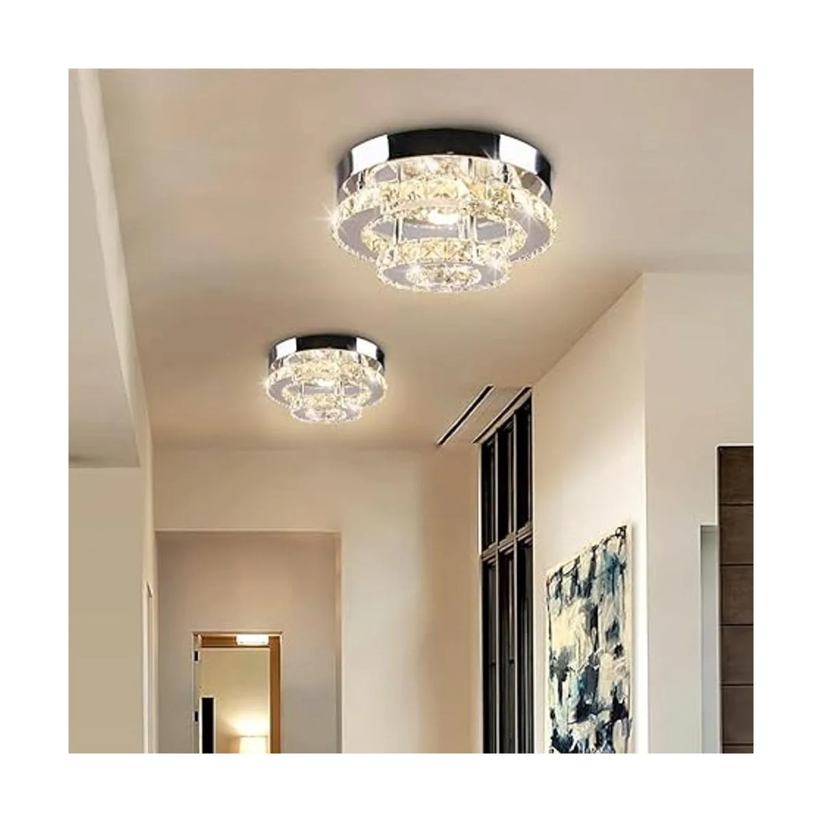Cainjiazh Mini lámpara LED de techo de cristal de 2 capas de luz redonda de techo empotrada para pasillo, escalera, cocina, baño regulable