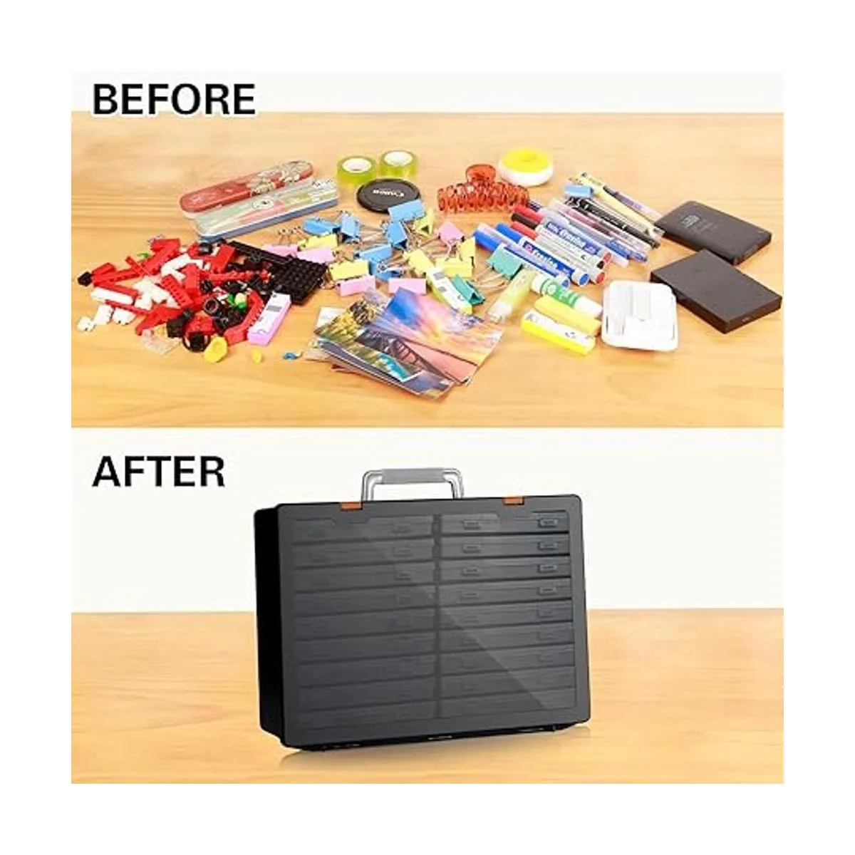Resistente y duradero: hecho de polipropileno sin ácidos, este organizador de suministros de manualidades no es fácil de romper, sirve durante más de 5 años. Alta resistencia al desgaste, fuerte carga. Transparente y visible, la gran funda exterior con asa permite una fácil organización y reloj, conveniente para llevar.