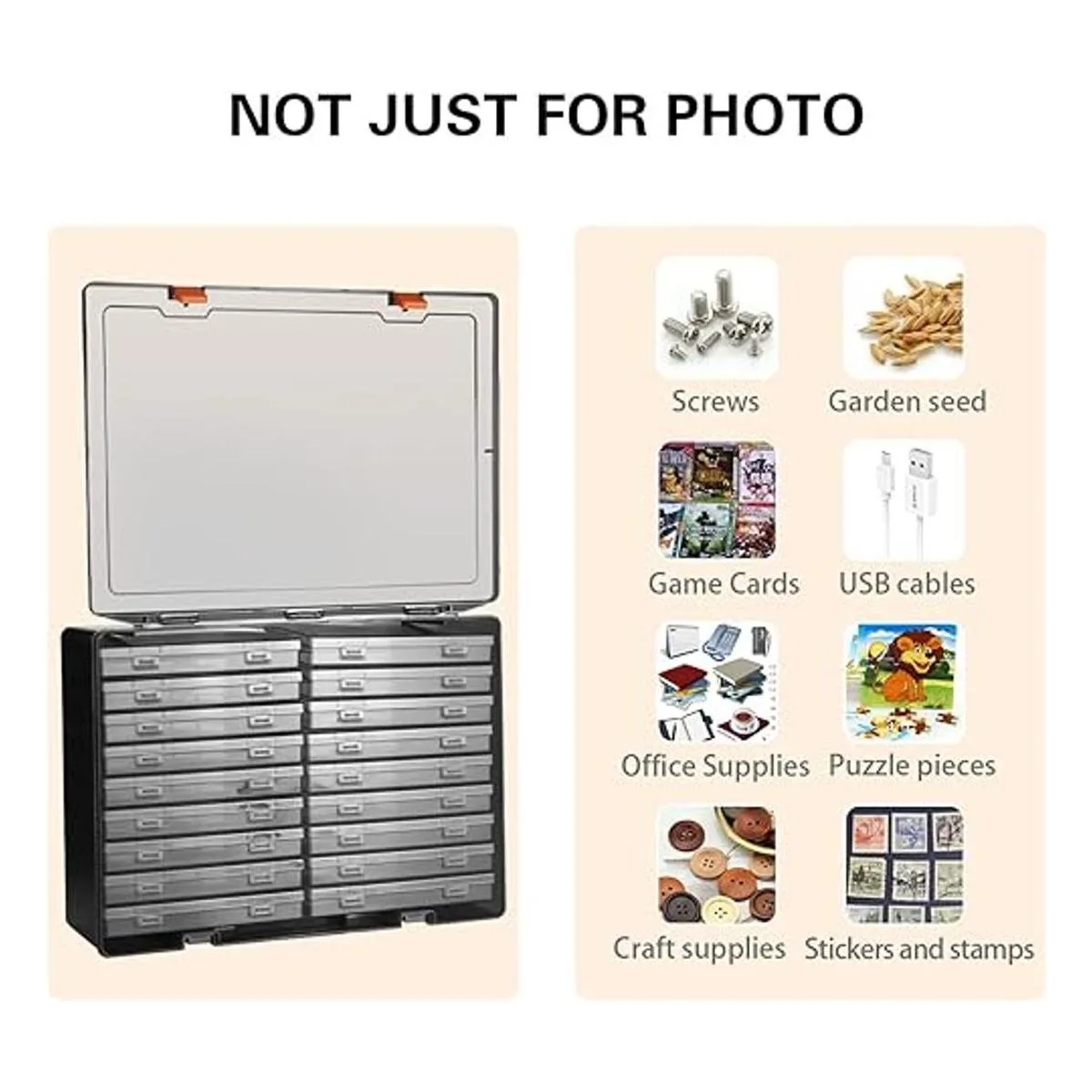 Caja multiusos: el contenedor de almacenamiento de cajones puede ayudar a organizar, almacenar y proteger eficazmente tu preciosa imagen, fotografía, artículos de manualidades, semillas de jardín, rompecabezas, tarjetas de juego, cables USB, suministros de oficina, almacenar tarjetas de tareas de estudiantes, juegos de cartas, juegos de dados, LEGOS, suministros de arte, piezas de rompecabezas, maquillaje y otras actividades, postales, sellos, tarjetas de felicitación y papelería de la suciedad y el polvo