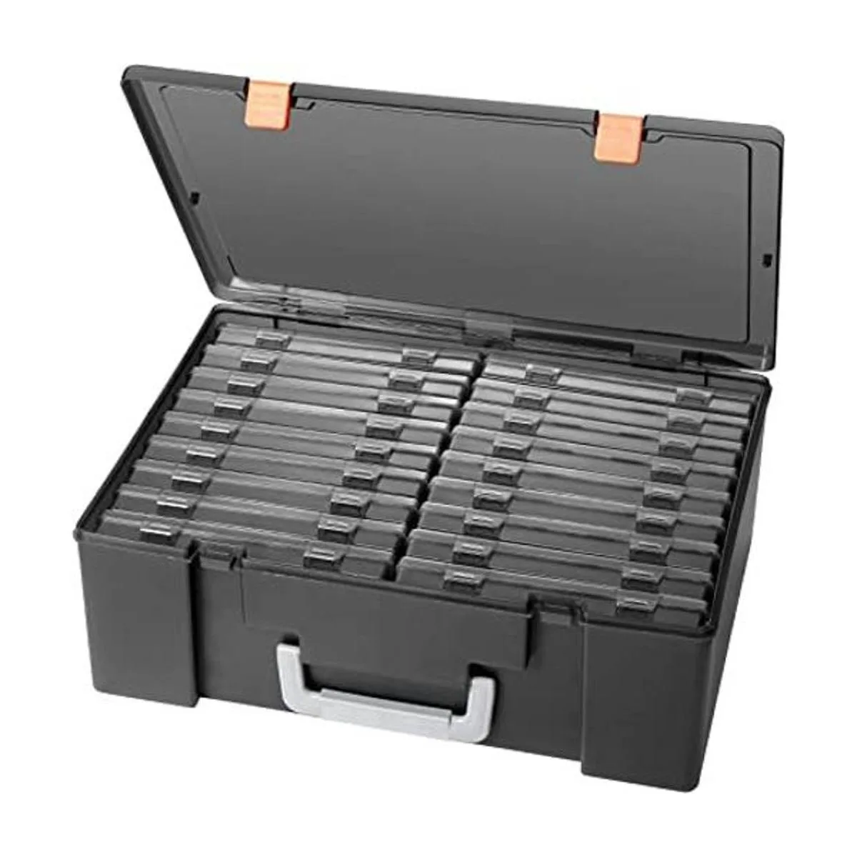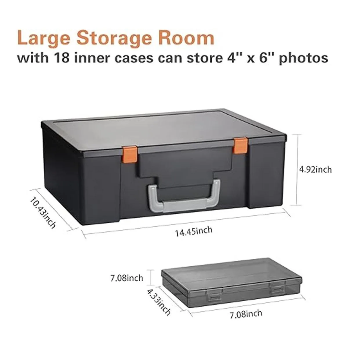 Caja de almacenamiento de fotos de 4 x 6 pulgadas, 18 fundas interiores extra grandes, organizador de fotos grande sin ácidos, caja de almacenamiento de fotos, caja de almacenamiento de fotos, caja de almacenamiento de fotos, caja de almacenamiento de manualidades de plástico para calcomanías de fotos, sellos semillas negro