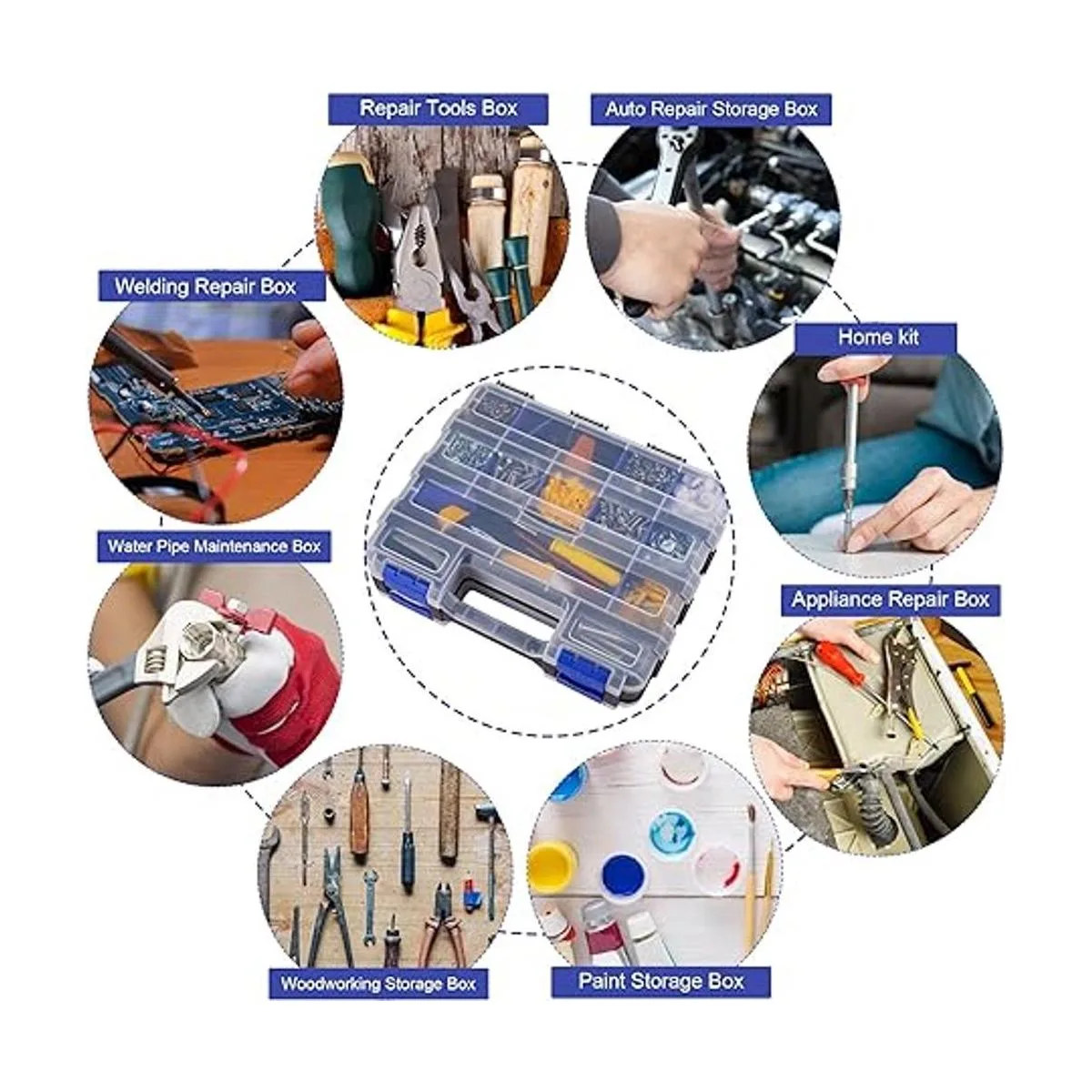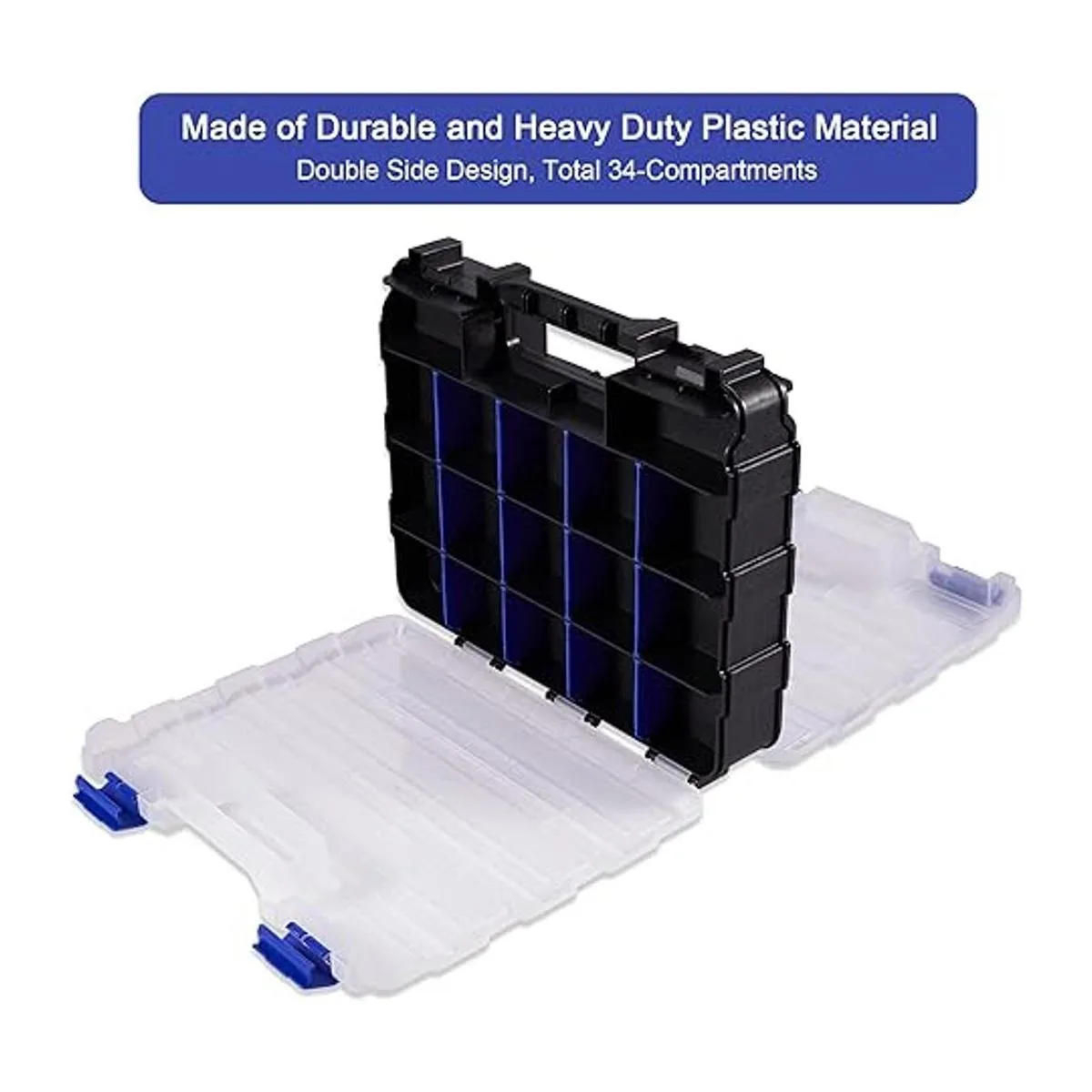 Caja de almacenamiento de piezas pequeñas, organizador de caja de herramientas de doble cara, 34 compartimentos, organizadores de hardware con separadores de plástico extraíbles para tornillos, tuercas, clavos, pernos