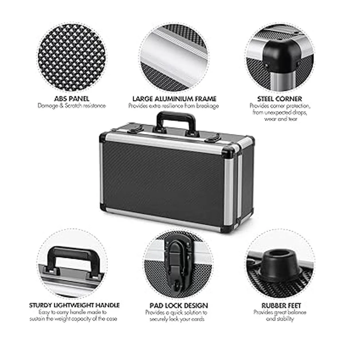 Pieza mental: diseñado por un coleccionista de tarjetas para coleccionistas de tarjetas Tu nueva funda de almacenamiento de tarjetas comerciales tiene un interior de espuma EVA perfectamente precortado que se adapta a todas tus valiosas tarjetas También viene con 9 separadores de espuma que mantendrán todas tus tarjetas clasificadas en su lugar. Dale a tus tarjetas la protección que se merecen