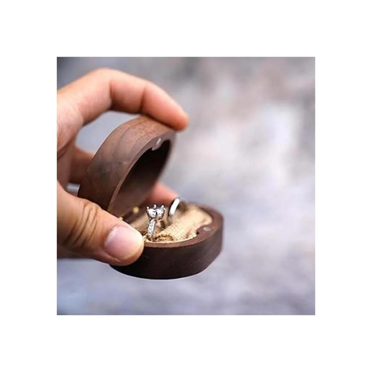 Caja de anillo de boda, caja de anillo de madera para propuesta, soporte de anillo de compromiso rústico para señor y señora talla, regalo para ceremonia de boda