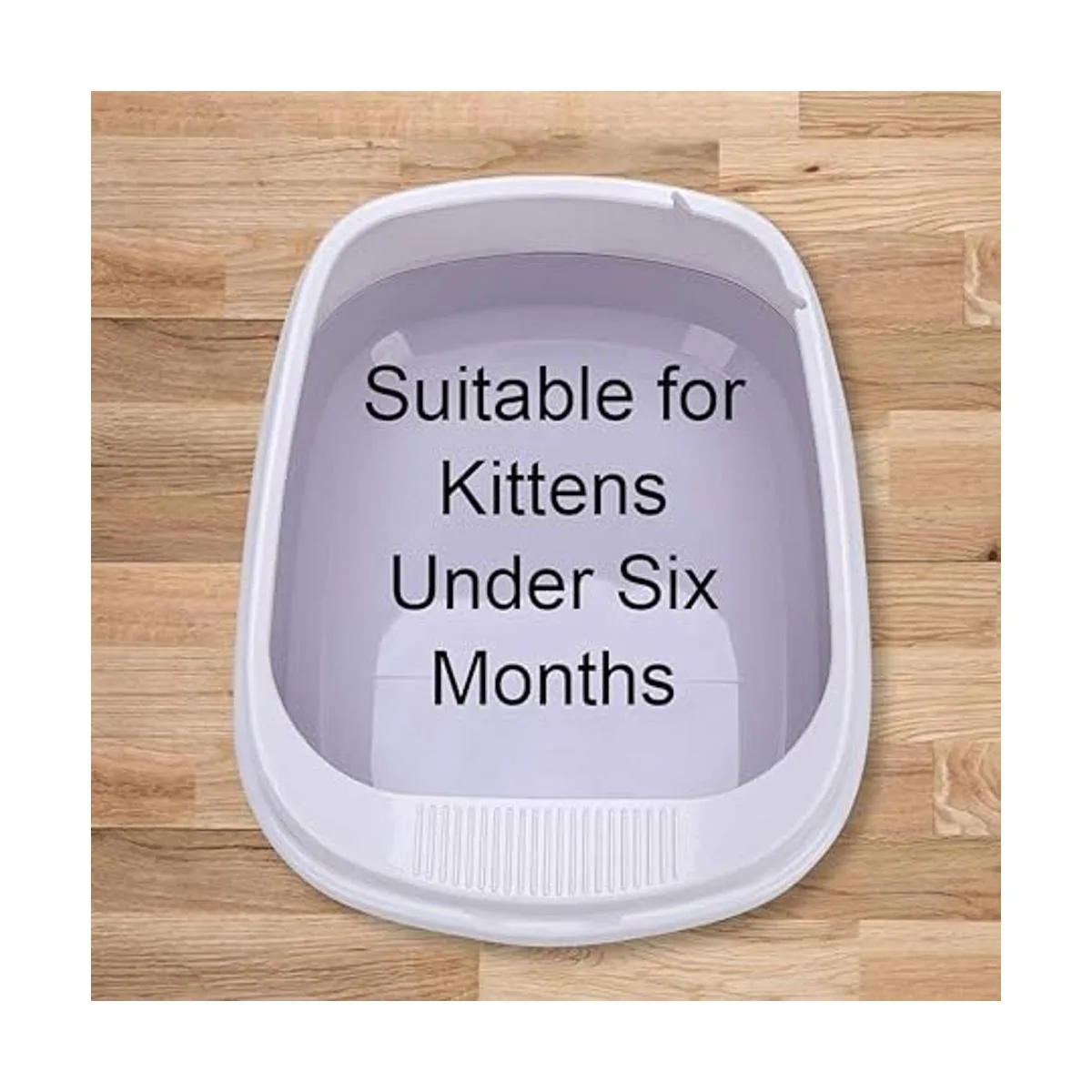 Caja de arena abierta para gatos con tapa, alfombrilla para arena para gatos, cuchara para levantar caca y cuenco de acero inoxidable para gatitos, kit de inicio de gatos, paquete de 4 para gatos pequeños en 5 meses