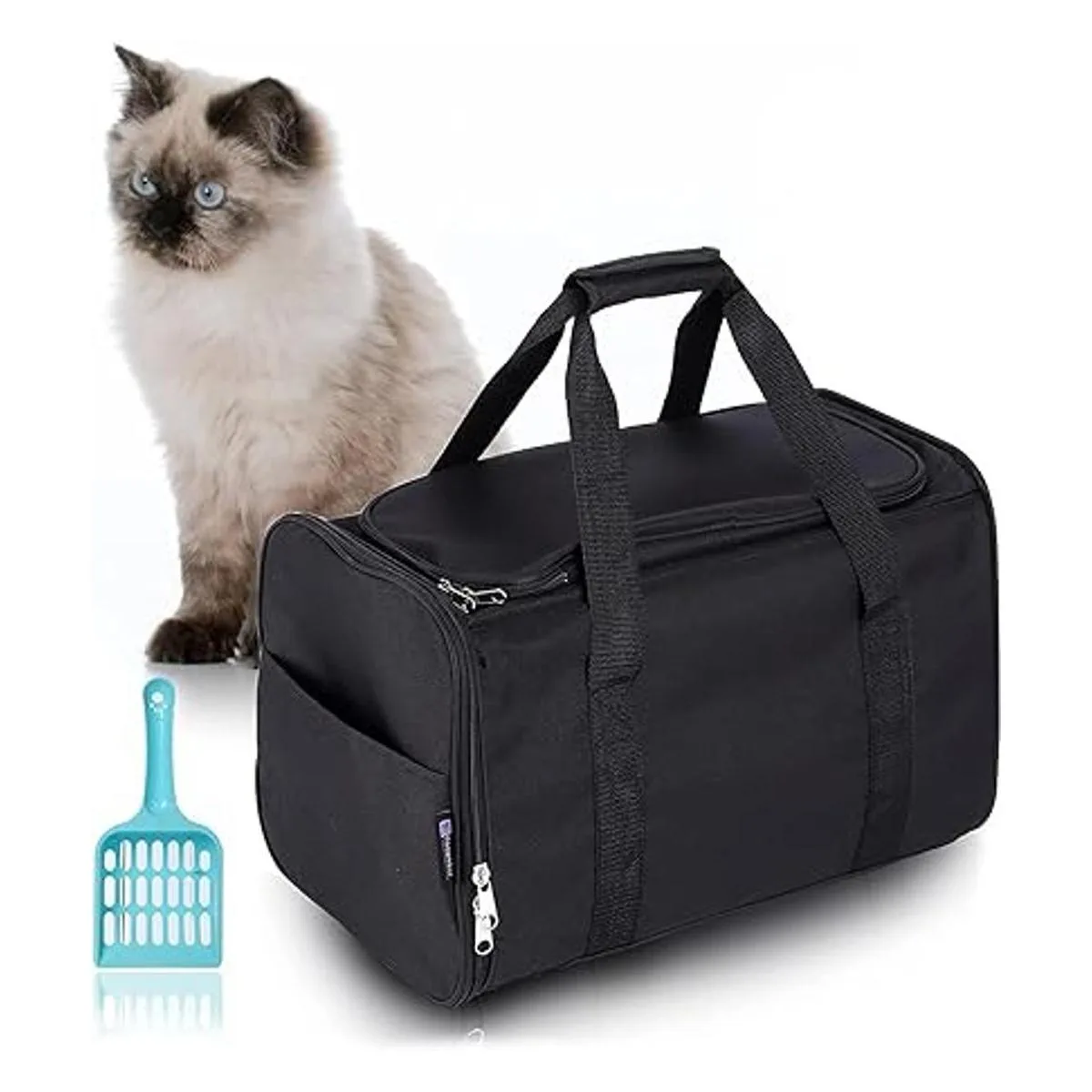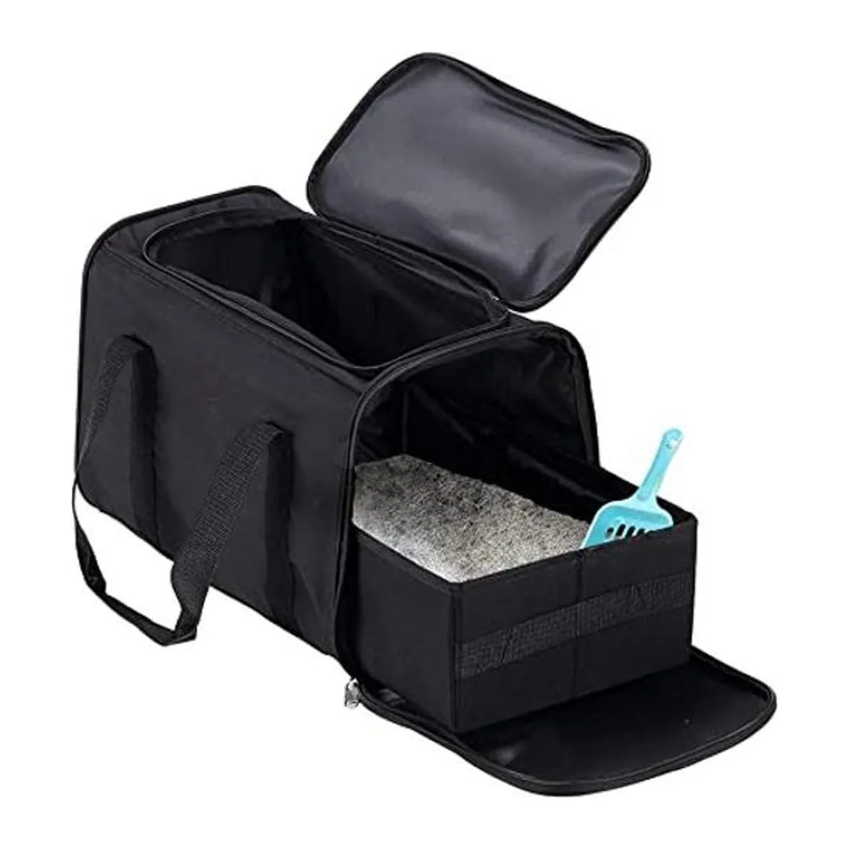 Diseño humanizado: 1. Abre el tragaluz para que el gato entre y salga, abre la puerta lateral, tira de la caja de arena para gatos, fácil de recoger. 2. Cierra todas las cremalleras para evitar que la arena se derrame y mantiene el olor en control. 3. Los bolsillos dobles pueden poner cucharas de arena para gatos, bolsas de arena para gatos, juguetes para gatos. cuenco para gatos, etc. 4. Mango fuerte, sin problema con arena para gatos de 30 libras.