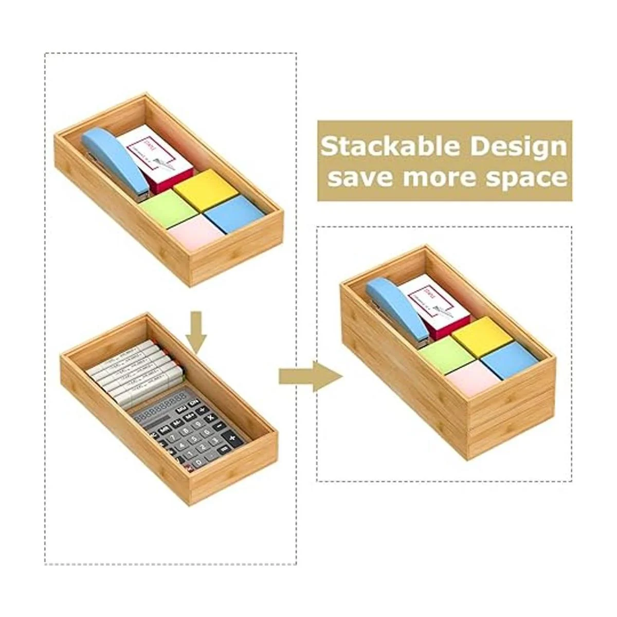 Diseño apilable: estas bandejas de madera apilables ahorran espacio, especialmente al organizar el escritorio o los cajones más altos