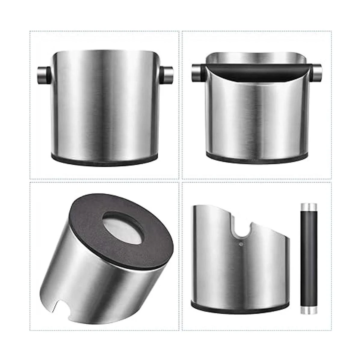 Caja de café SANTOW de acero inoxidable con barra extraíble y base antideslizante, tamaño grande plata