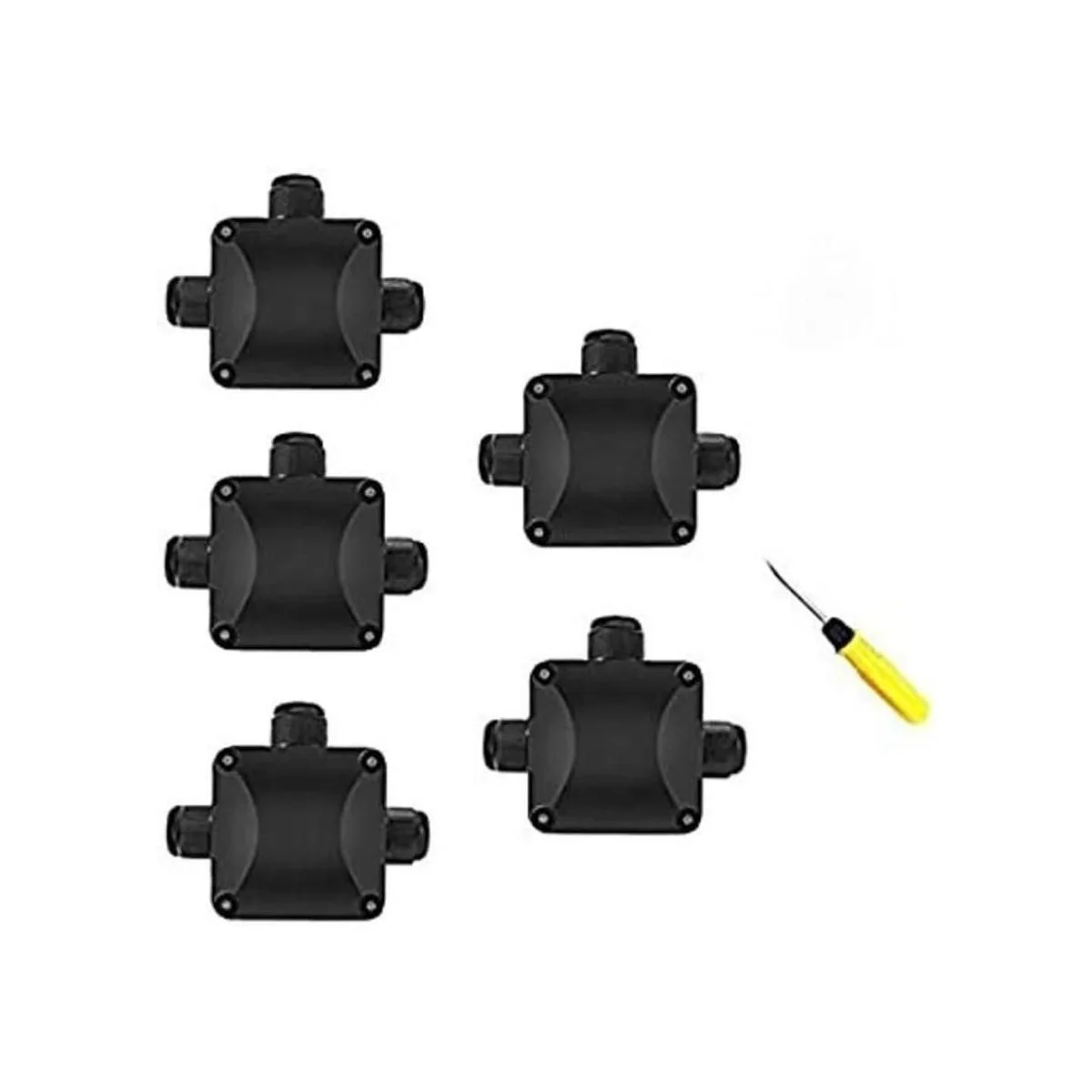 Caja de conexiones, 5 conectores de cable IP68 impermeable, caja de conexiones eléctrica externa de 3 vías más grande de 0.217 in 0.402 in 1 destornillador