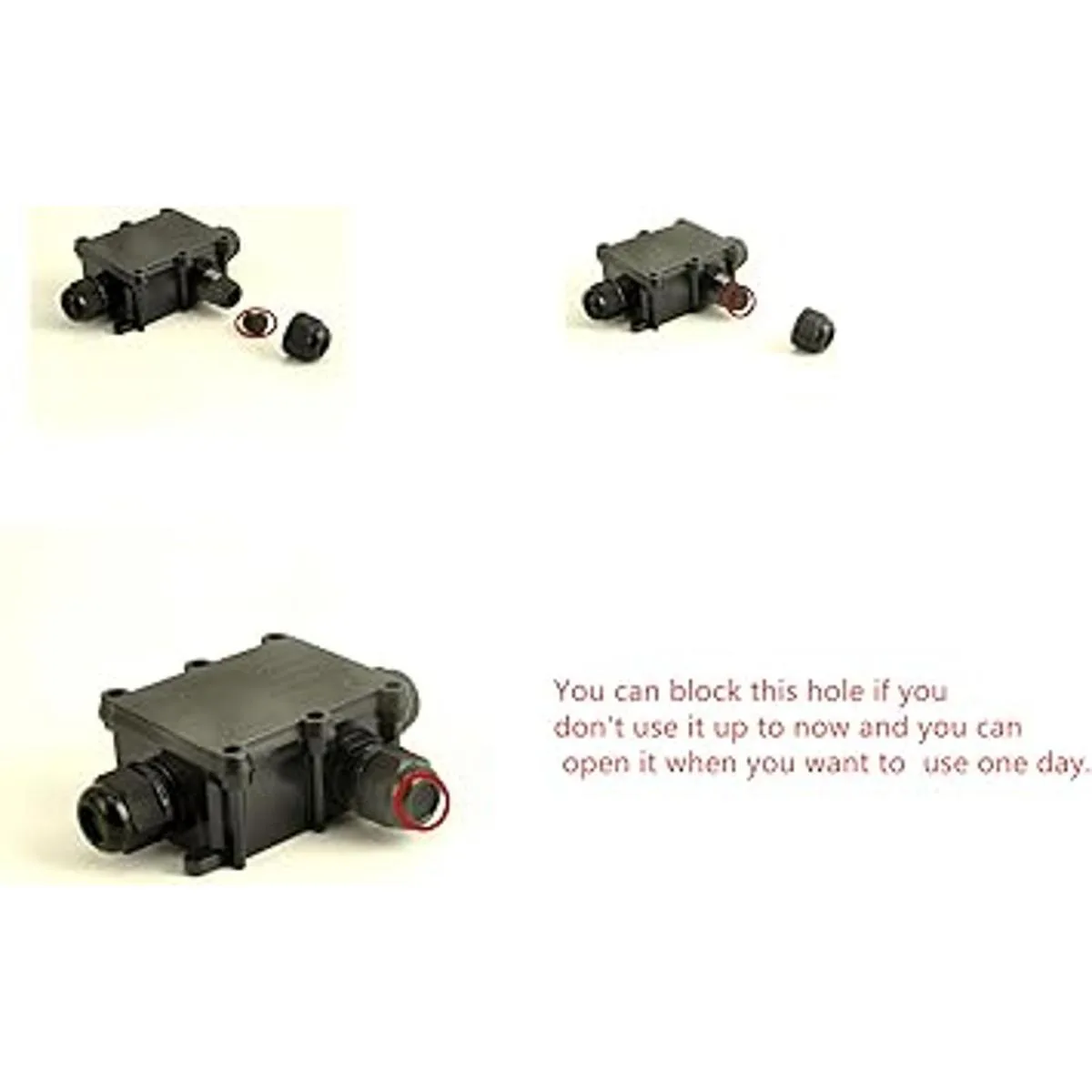 Caja de conexiones impermeable, caja de conexiones para exteriores, caja de conexiones eléctrica impermeable, IP68, 3 vías M20 cable coaxial de 4 a 0.472 in, negro
