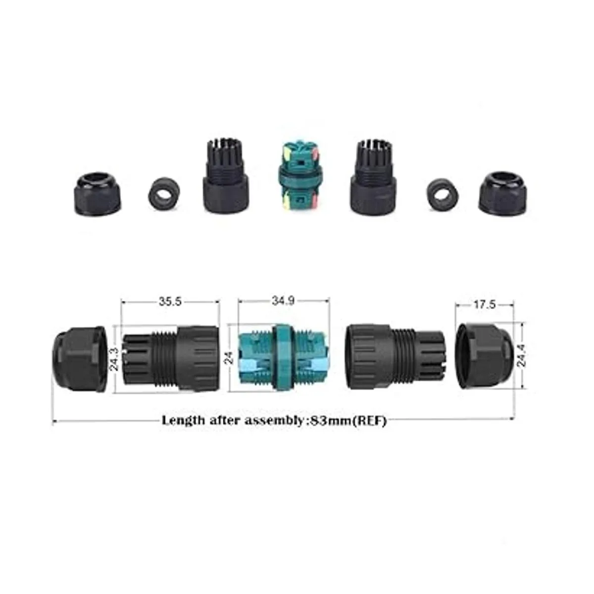 Montaje en panel sin tornillos, conector rápido IP68 impermeable, instalación más rápida, no necesita destornillador. Abre un extremo del conector impermeable, pasa el cable recto, aprieta la tuerca para cambiar el diámetro interior de la arandela girando la arandela, luego aprieta para completar el sello impermeable y ahorrar tiempo