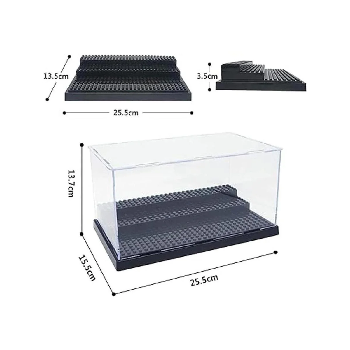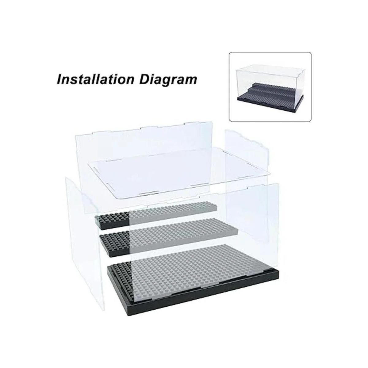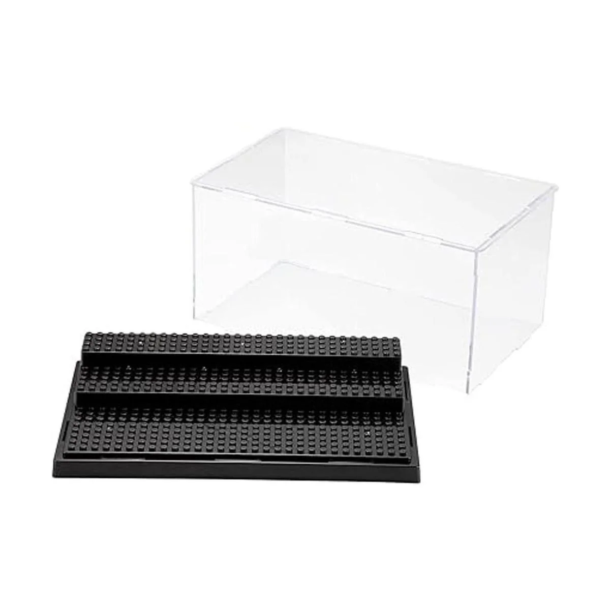 Funda transparente hecha de material acrílico, las minifiguras son claramente visibles