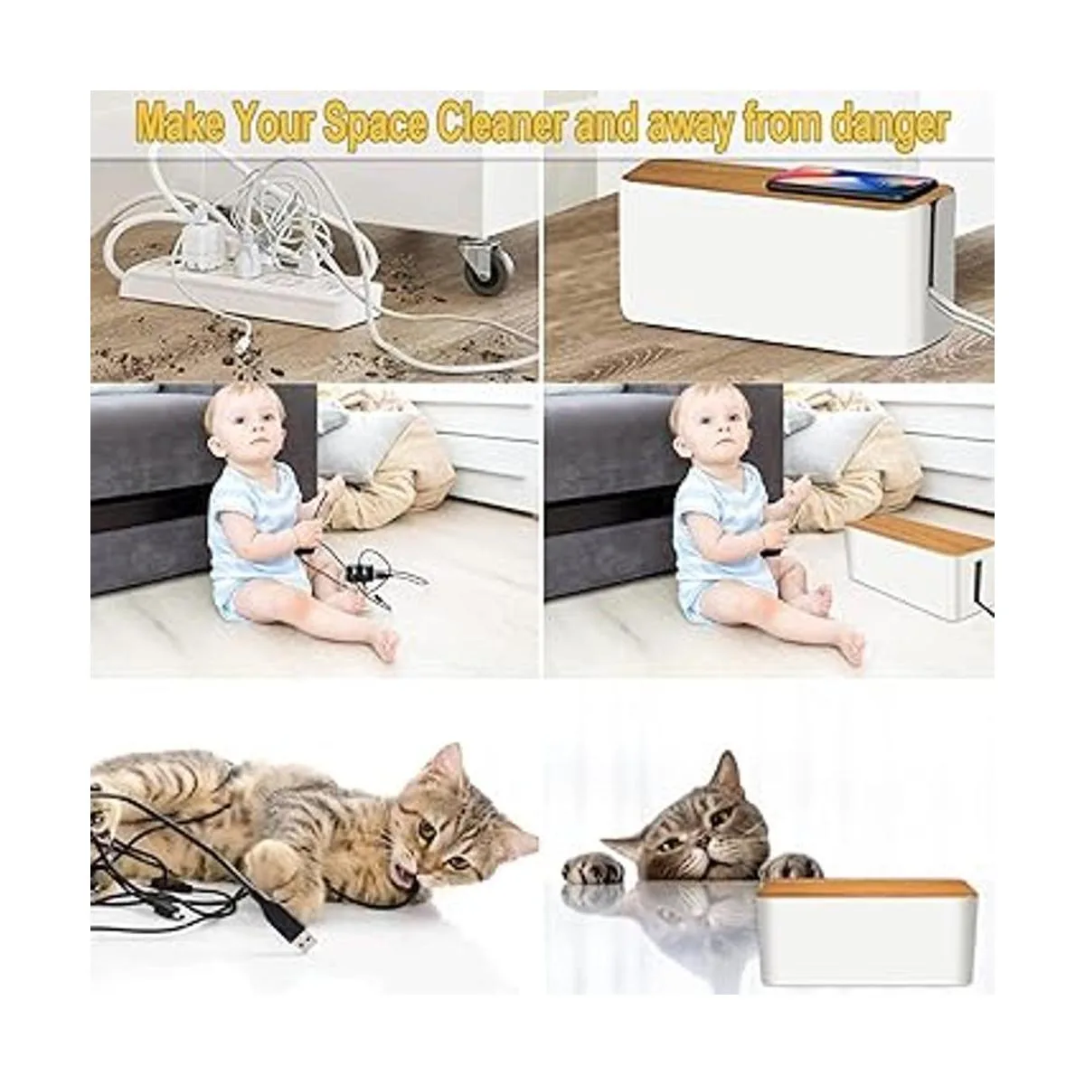 Garantiza la seguridad del hogar y la oficina: evita que los niños y mascotas entren en tus cables eléctricos y cables con organizador de cables y reduce los accidentes de tropiezo causados por cables expuestos. Mantiene los cables ocultos debajo de los escritorios. Elimina las distracciones no deseadas y el desorden para ayudar a crear un entorno más libre de estrés.