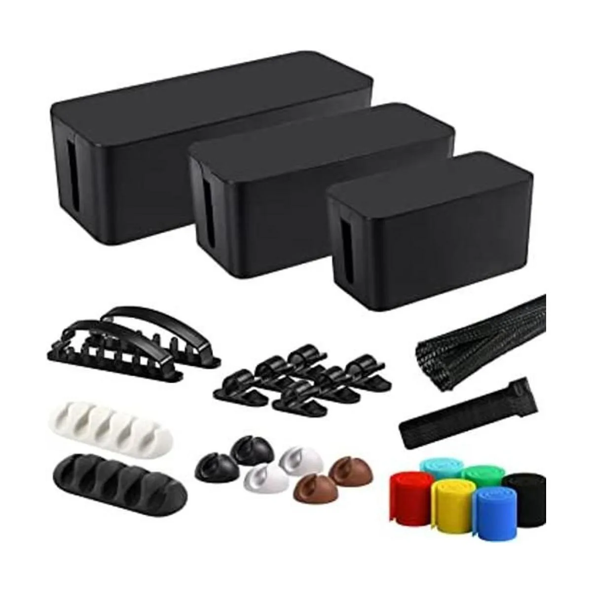 Caja de gestión de cables, paquete de 3 cajas organizadoras de cables con 33 piezas de gestión de cables para ocultar la tira de energía, protector de sobretensiones debajo del escritorio y en el suelo, corrector de alambre para computadora en casa, oficina, computadora TV negro