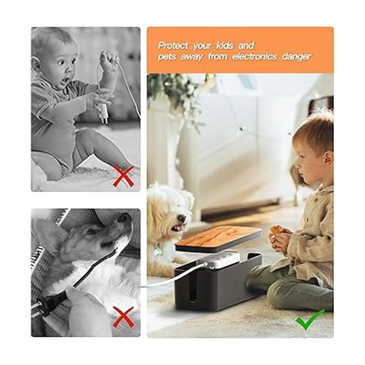 El estilo cumple con la practicidad: con un elegante acabado negro mate y blanco y grano de madera simulado, se mezcla con cualquier decoración. Un organizador de cables de oficina en casa y escritorio oculta y protege los cables y las regletas de alimentación que pueden ayudar a evitar que las regletas de alimentación o equipos eléctricos o cables toquen la alfombra o el suelo. Incluso cuentan con pies de goma antideslizantes para mayor estabilidad que los hacen menos accesibles para mascotas y niños para reducir los tropiezos o el acceso para una mejor seguridad.