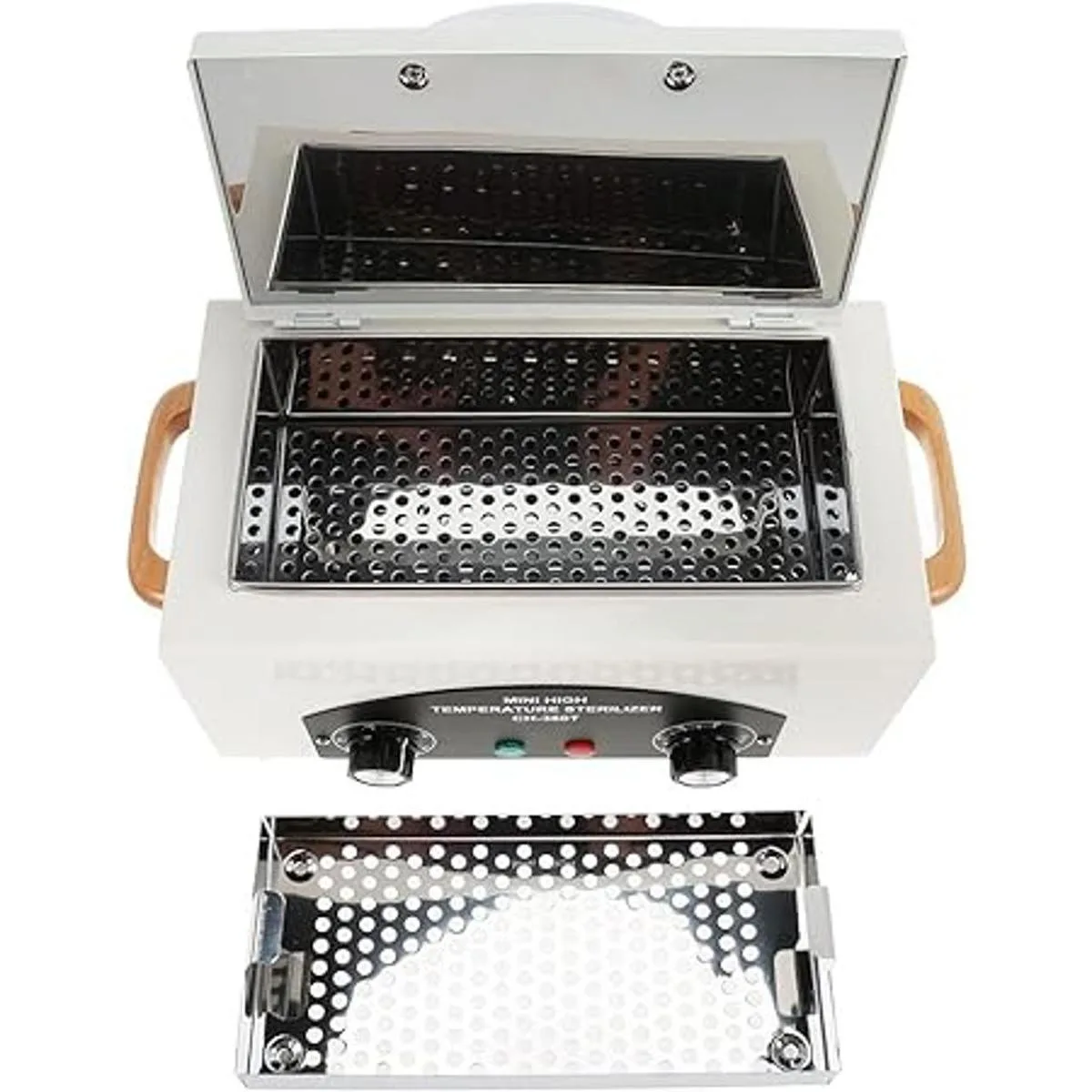 Cuenta con un elemento de calentamiento de arranque rápido para un funcionamiento rápido sin presión, vapor o productos químicos. A diferencia de los métodos de calor húmedo, el calor seco no necesita limpieza rutinaria. Es más cómodo de usar. La espaciosa caja también se puede utilizar como una caja de herramientas para guardar artículos, como tijeras de corte de pelo o limas de pedicura, cortaúñas.