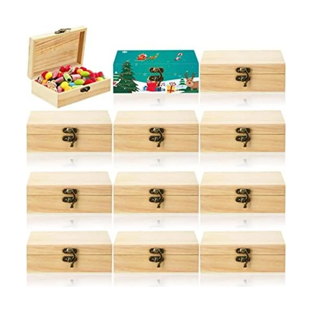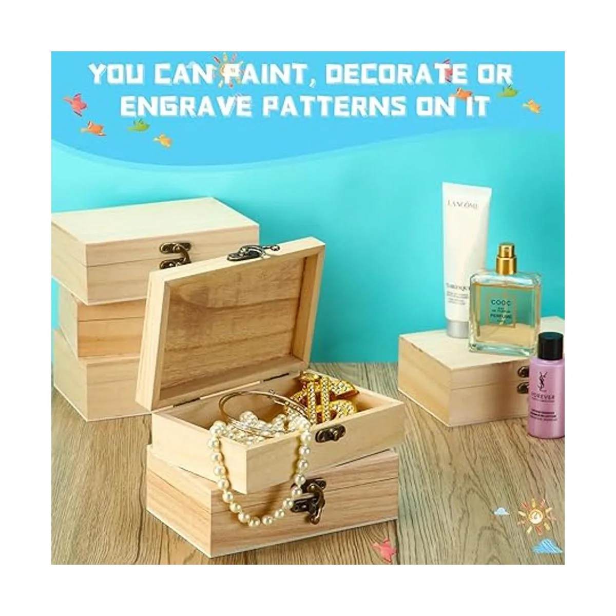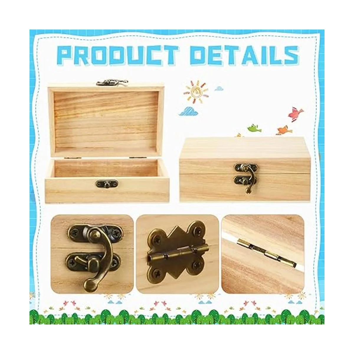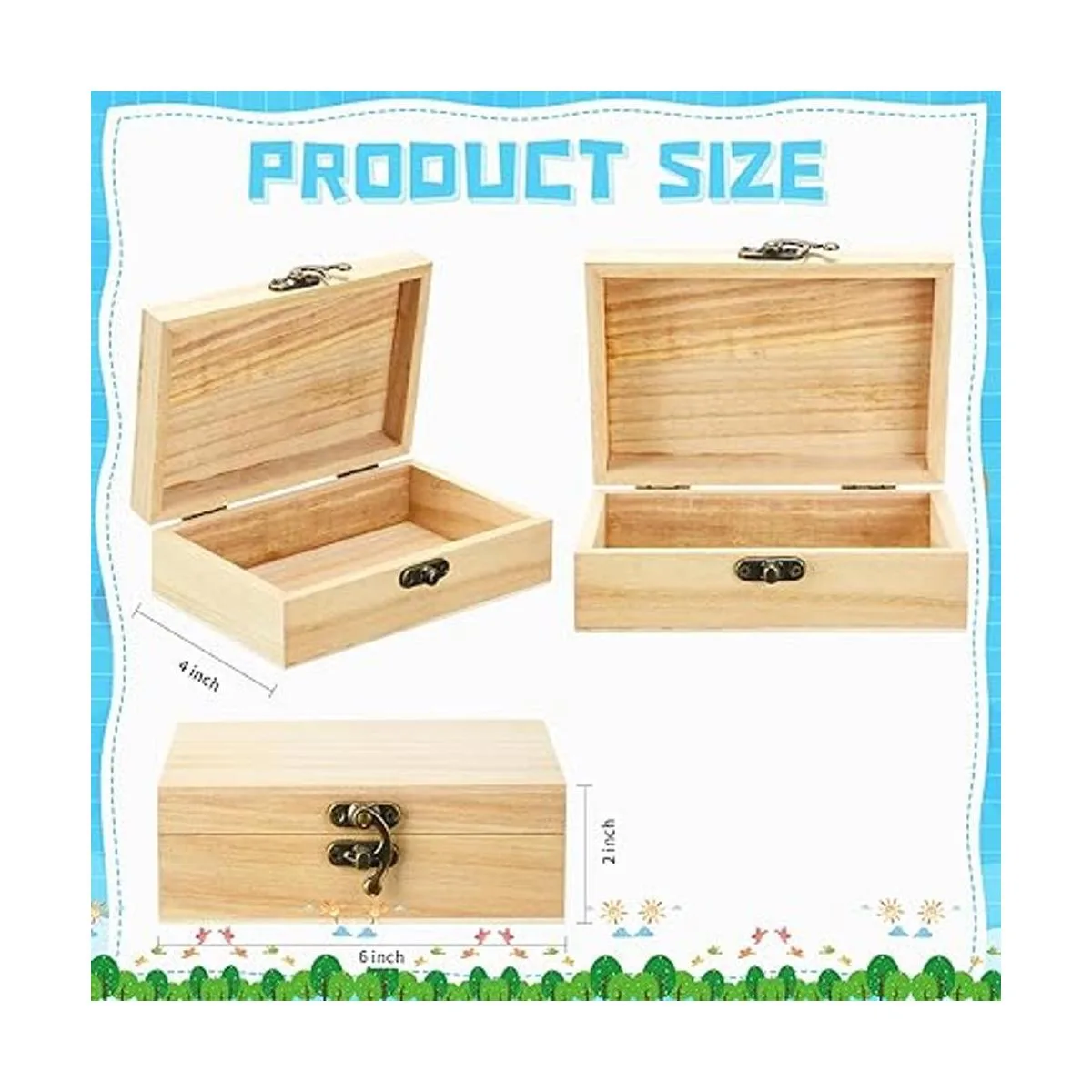Caja de madera sin terminar de 12 piezas con tapa con bisagras, caja pequeña de madera sin pintar, caja rectangular de recuerdo de joyería, caja de almacenamiento del tesoro para manualidades, proyectos de arte de almacenamiento en el hogar, 6 x 4 x 2 pulgadas