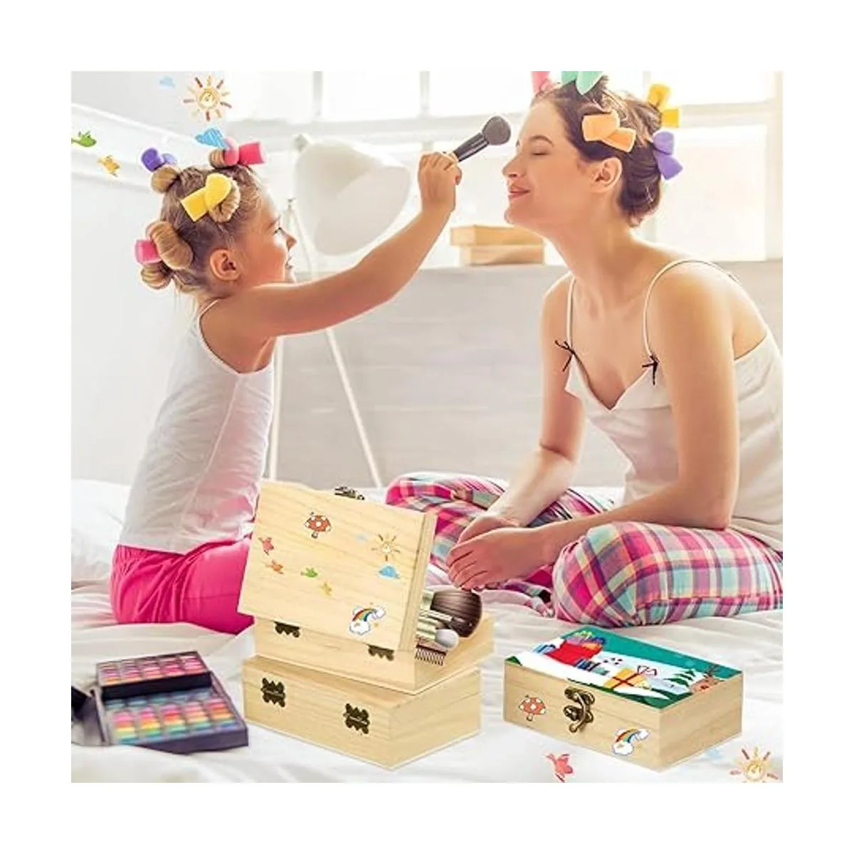 Diseño en blanco: la caja de madera con tapa con bisagras adopta un diseño de superficie en blanco, puedes dibujar patrones y colores en ella, haciendo tu propia caja, adecuada para proyectos de manualidades escolares, para ejercitar tu creatividad y capacidad estética