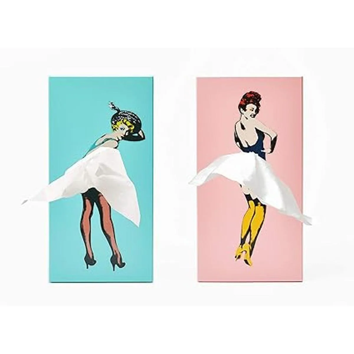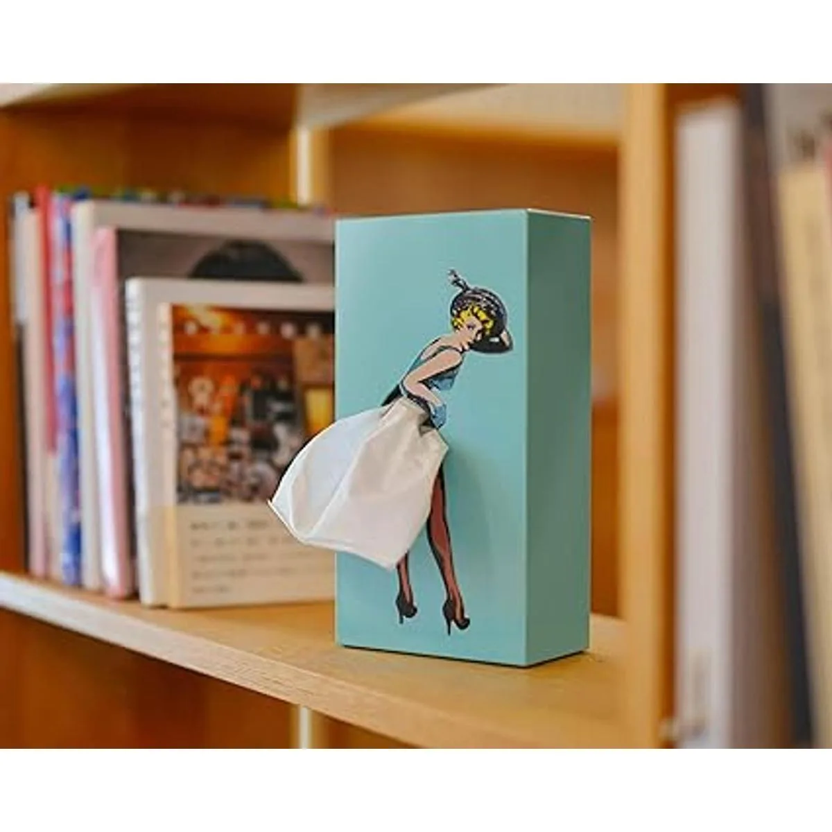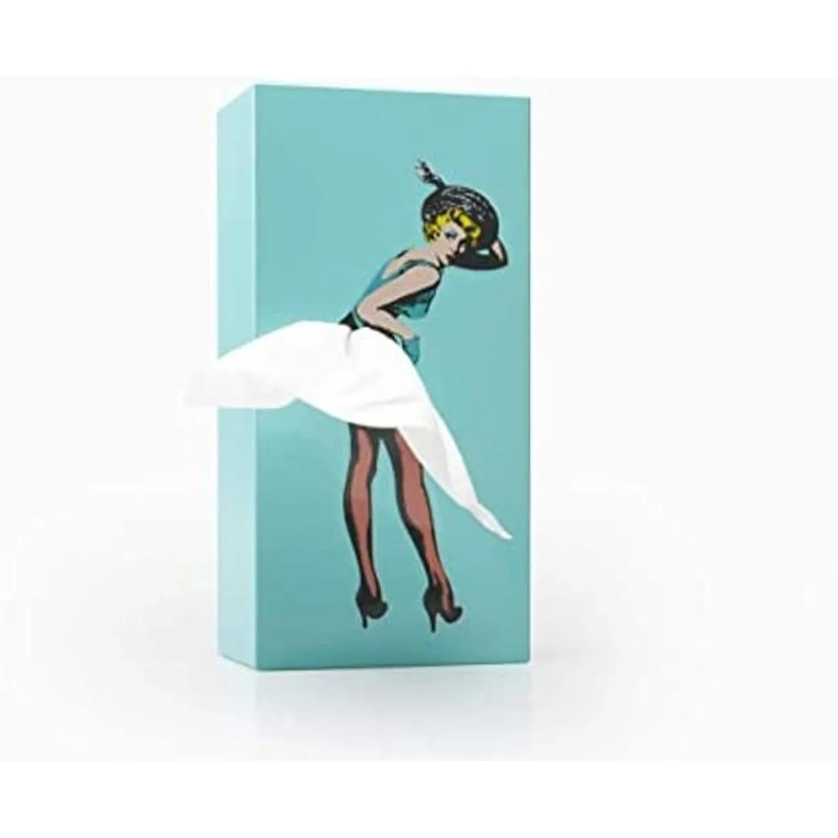 Diseño creativo: esta caja de pañuelos cuenta con una imagen vintage de una mujer. El corte perfectamente formado en el lugar correcto permite que el tejido se vuelva a peinar en una falda diferente después de cada uso.