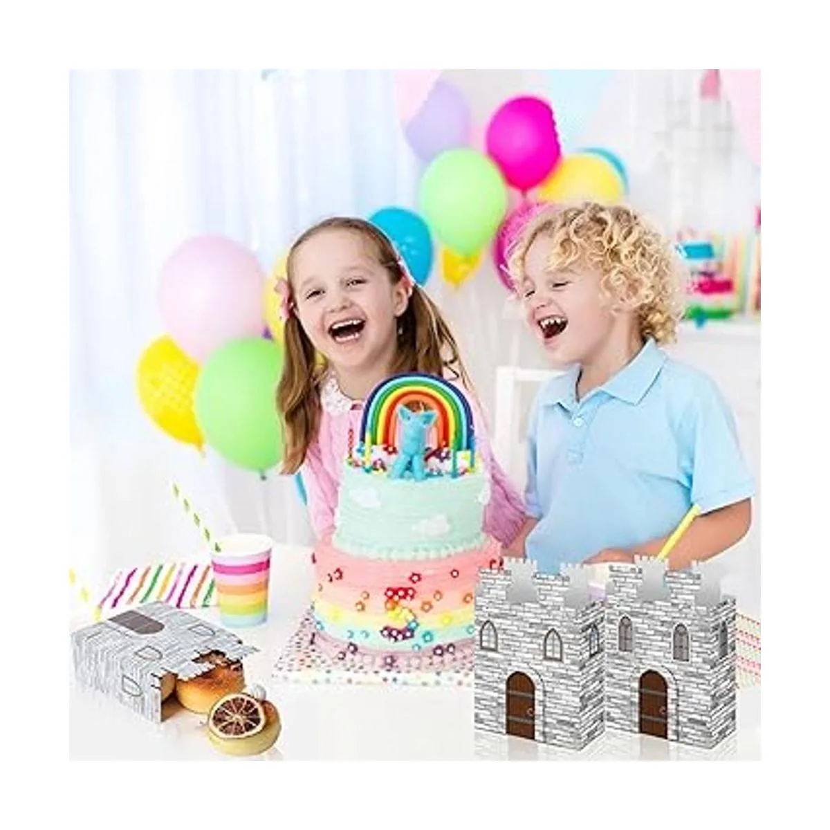 Caja de recuerdos de castillo, 12 piezas medieval, princesa caballero, suministros de fiesta de dragón, castillo de cartón, caja de dulces para cumpleaños, baby shower, tesoro, fiesta, decoración de mesa