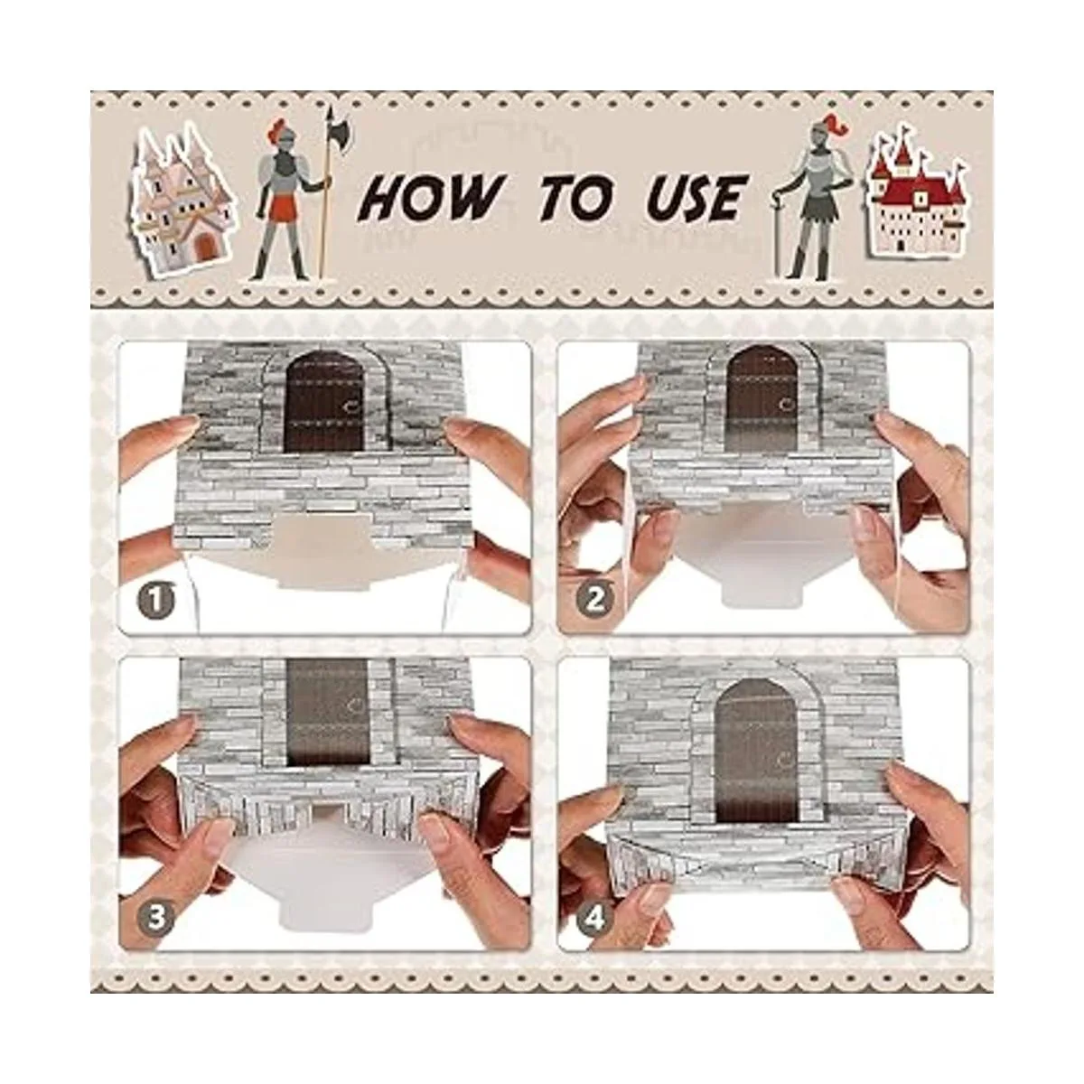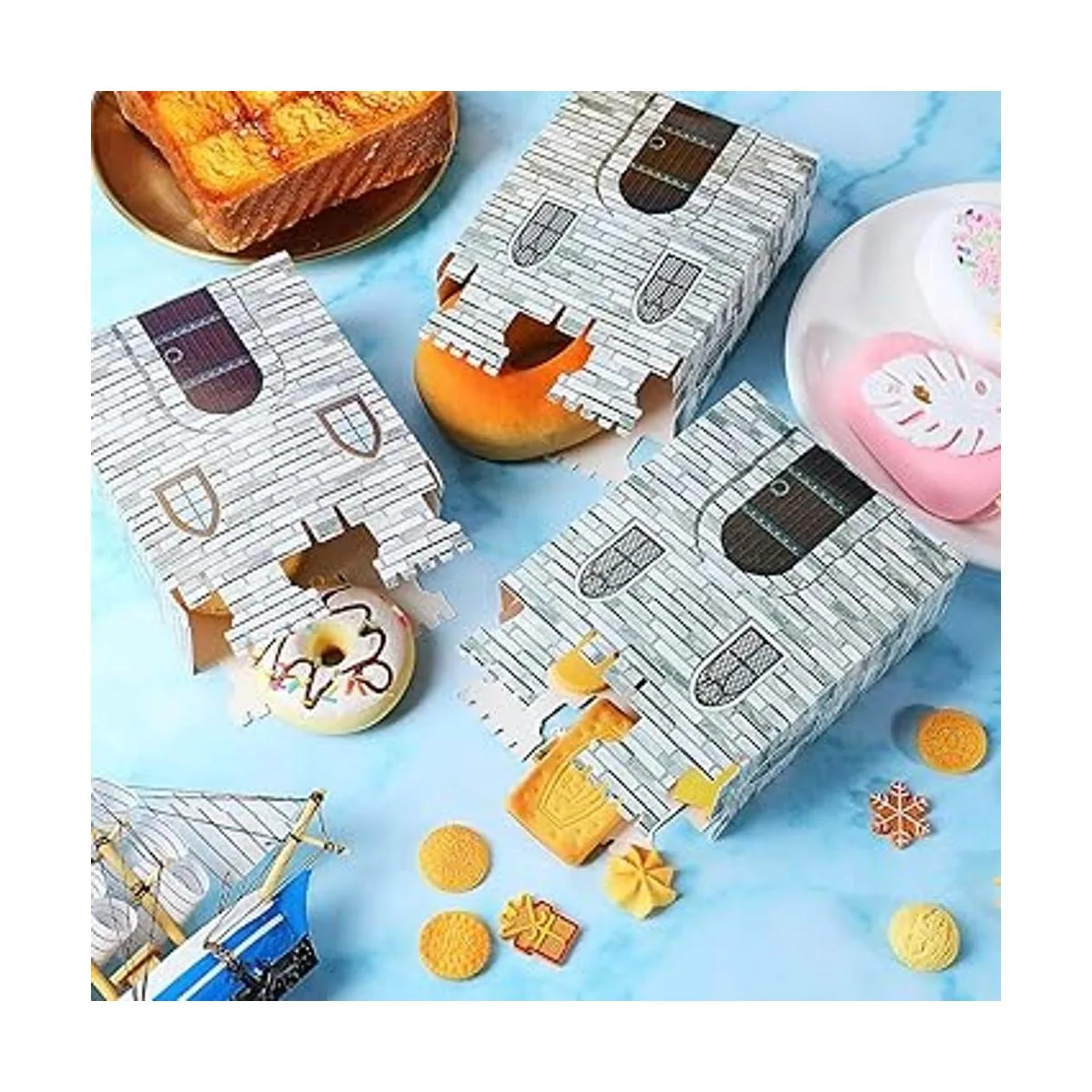 Diseño distintivo: el exterior de las cajas de dulces de princesa adopta impresión de ladrillo de piedra de castillo, con el estilo general de la Edad Media; hay 2 tipos diferentes de ventanas en la pared, por lo que puedes elegir tu caja de cartón favorita con amigos para llenar con dulces