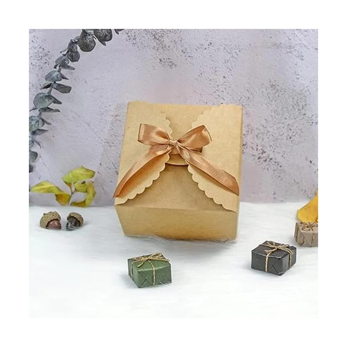 Caja de regalo marrón para regalos, paquete de 10 cajas de regalo pequeñas vacías con cinta para empaquetar dulces, galletas, chocolate, manualidades, velas y otros regalos pequeños, 4.75 x 4.75 x 3.53 pulgadas, bonitas cajas de papel
