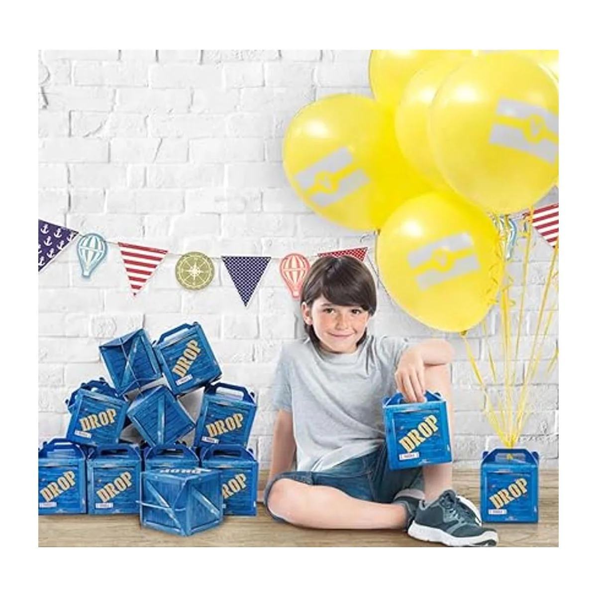 Diseño divertido para los fanáticos de los juegos: decora como la pieza central de tu mesa de comedor. Combina los globos amarillos con las cajas azules para parecerse mejor al videojuego. Nuestras cajas de regalo serán un gran envío