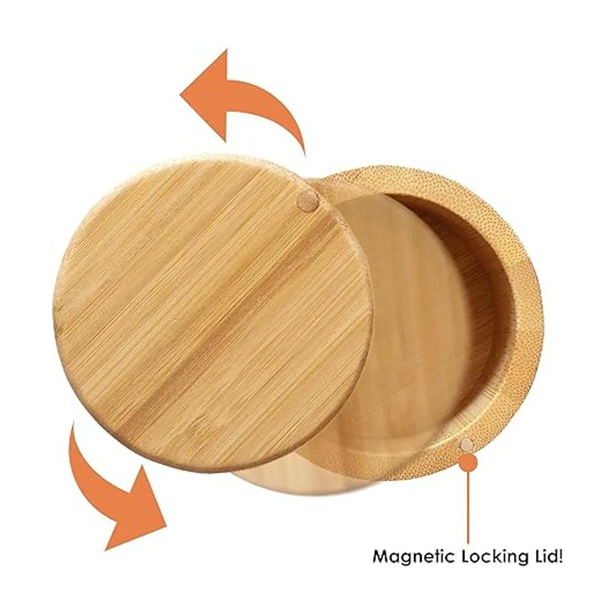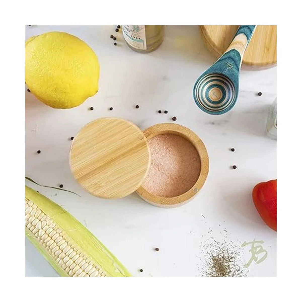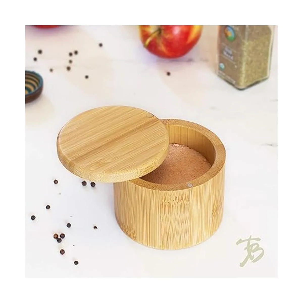 La hermosa caja de sal de bambú de Totally Bamboo para mantener la sal de mesa, sales gourmet, hierbas o condimentos favoritos a mano en tu encimera.