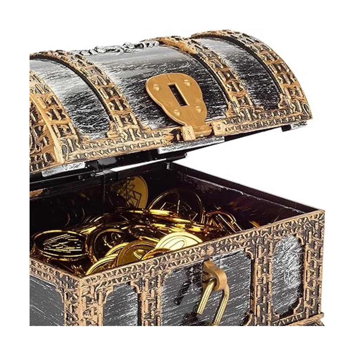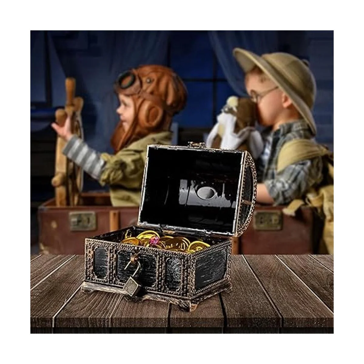 Caja del tesoro pirata de plástico para niños, caja del tesoro vintage pirata, mini juguetes de pecho pirata para niños