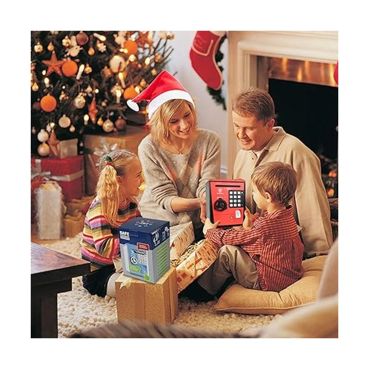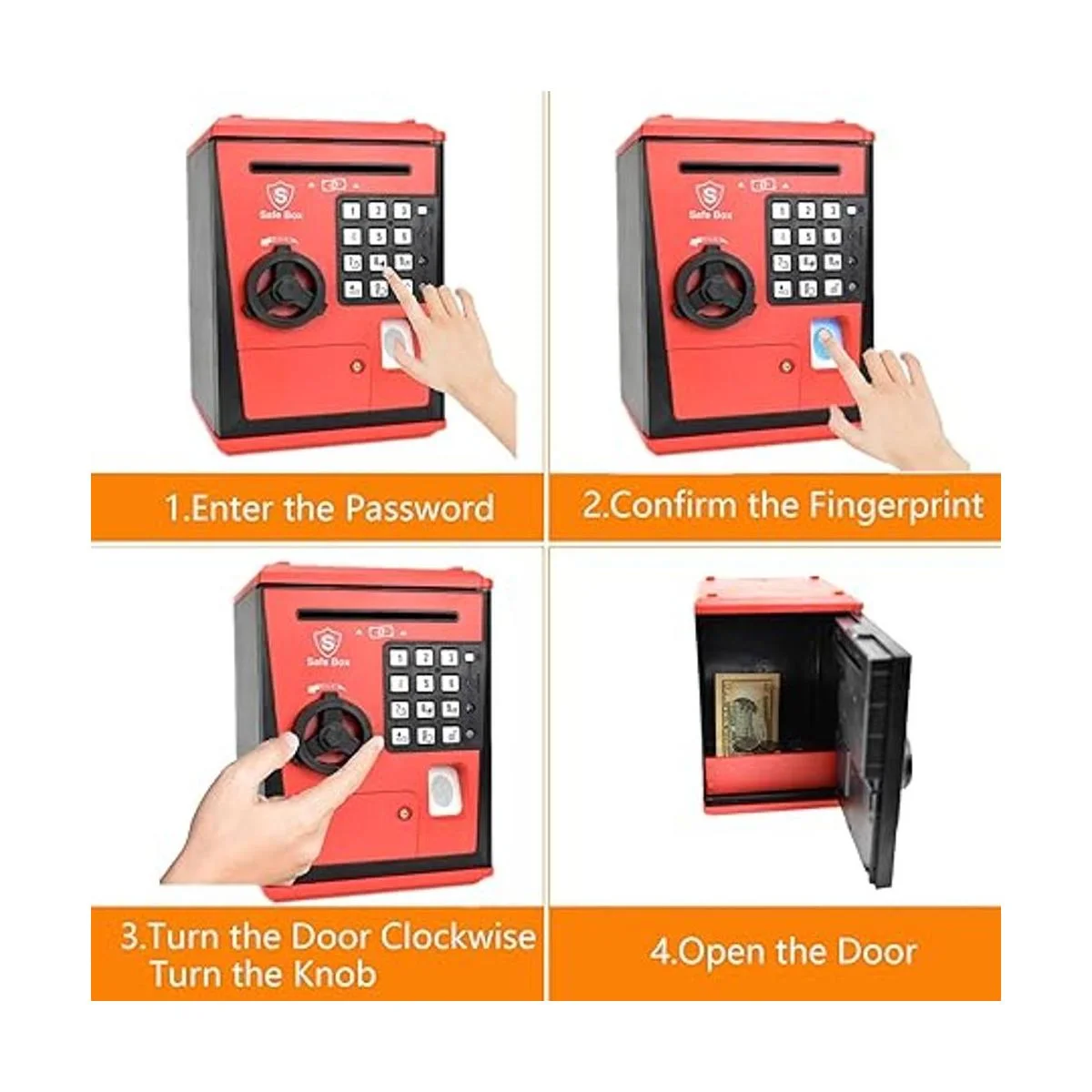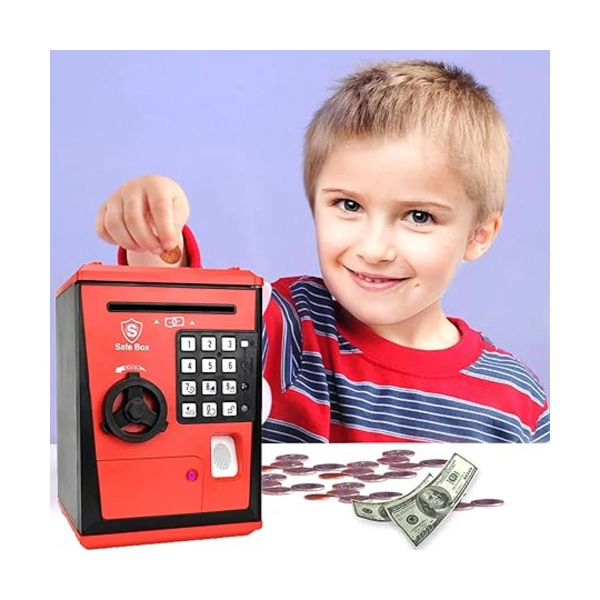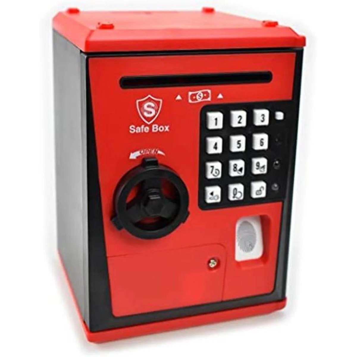 Caja fuerte de juguetes, alcancía de cajero automático, caja de ahorros de monedas de dinero, gran regalo para niños y niños rojonegro
