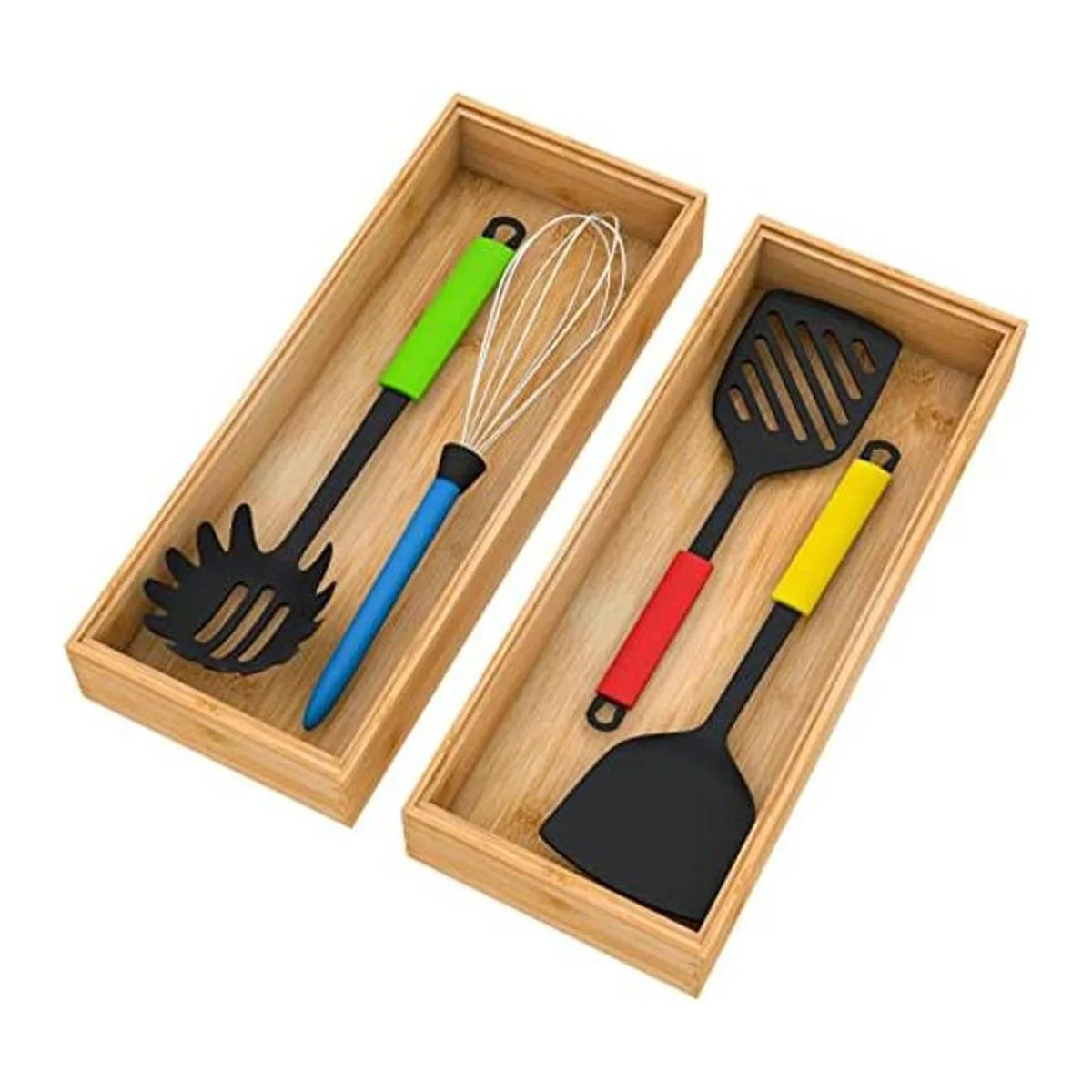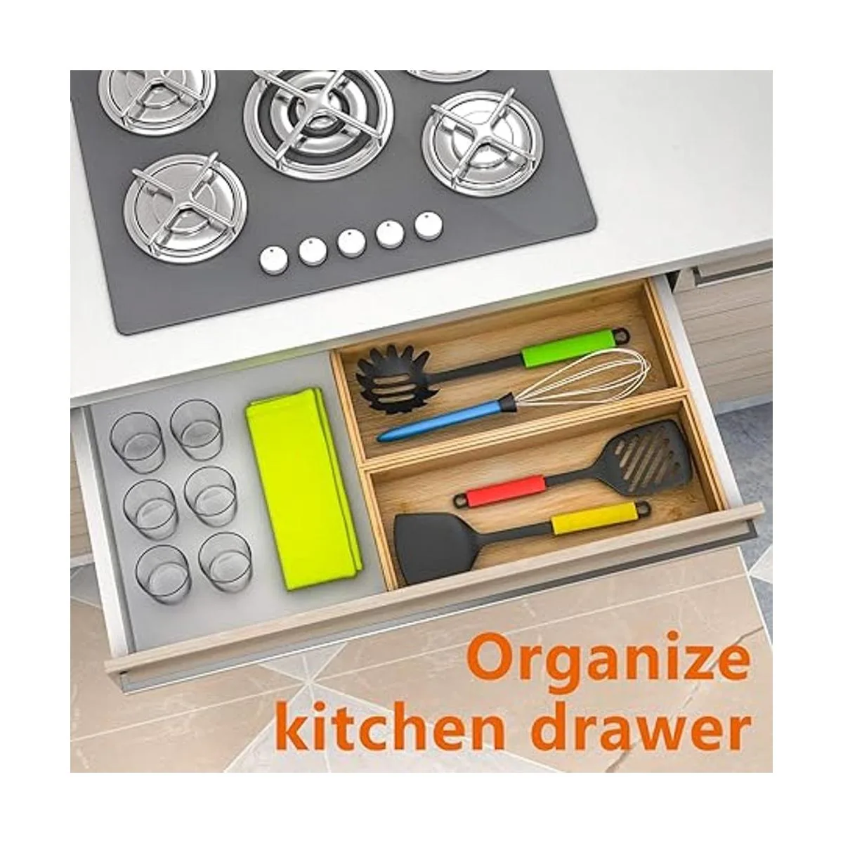 Organizador de cajones de cocina: esta caja de almacenamiento de bambú puede organizar accesorios de cocina, como juego de espátulas, cucharas medidoras, moldes de galletas, bolsas de té, tazas K, etc.