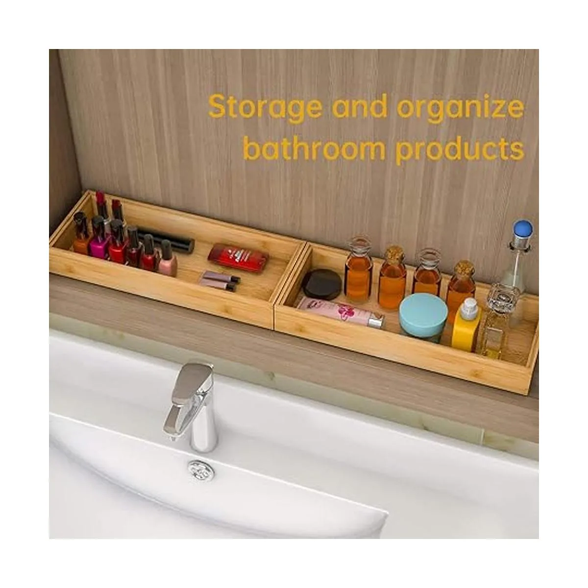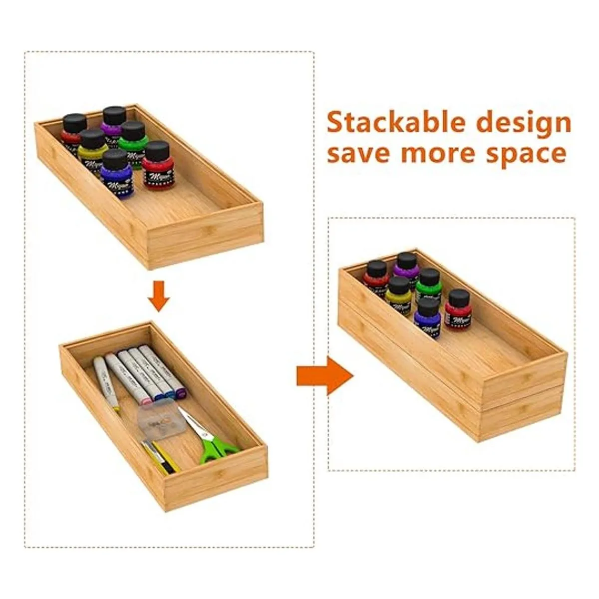 Caja organizadora de cajones de bambú para cocina, juego de 2 bandejas apilables de madera, 15 x 6 x 2.5 pulgadas