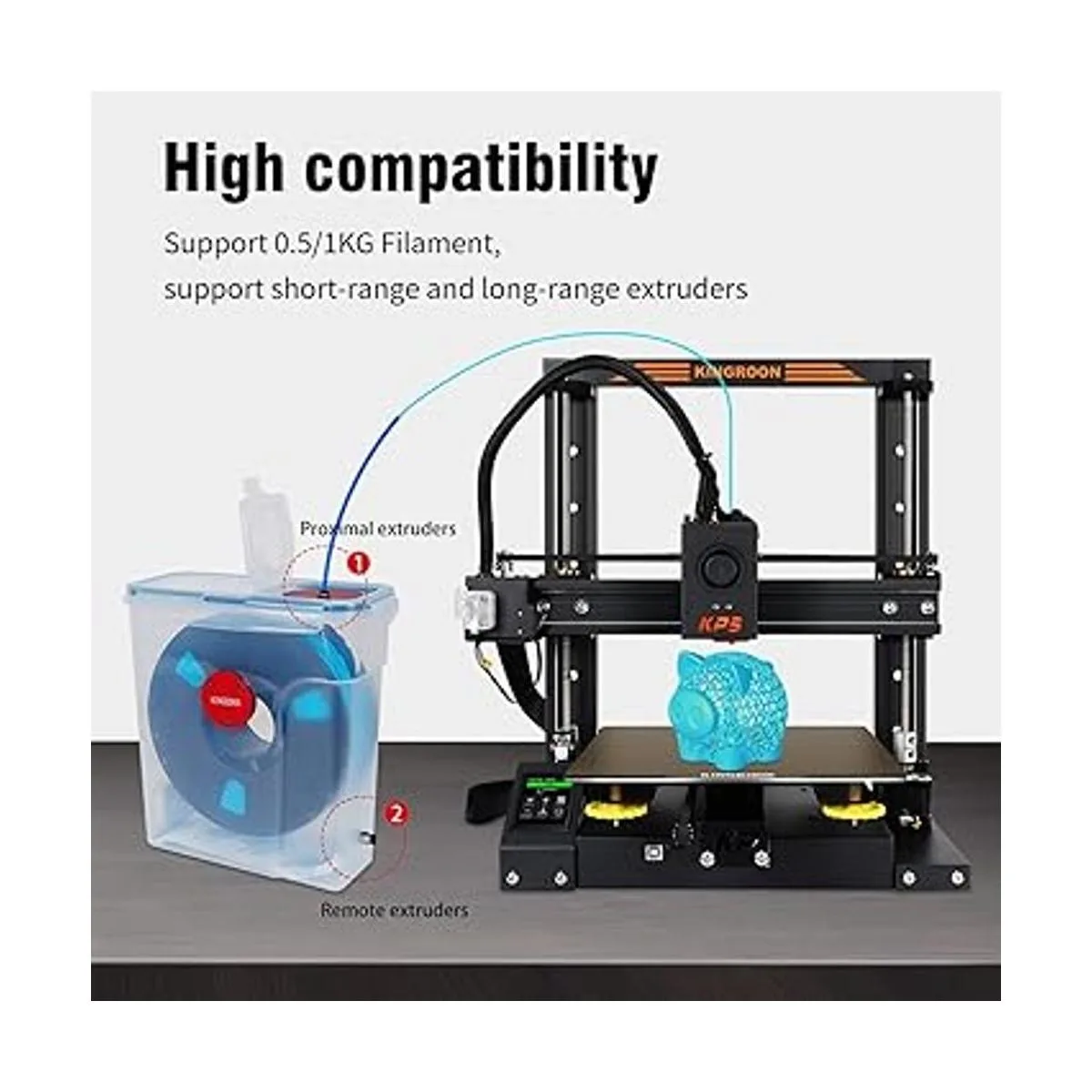 3. Alta compatibilidad y ahorro de tiempo de detección: la caja de secadora tiene alta compatibilidad, puede almacenar filamentos de 0,5/2.2 lbs, y soporta extrusor directo y extrusor Bowden. El puerto superior de la caja de secadora es la conexión a la extrusora Bowden y el puerto derecho de la caja de secadora es la conexión a la extrusora directa.