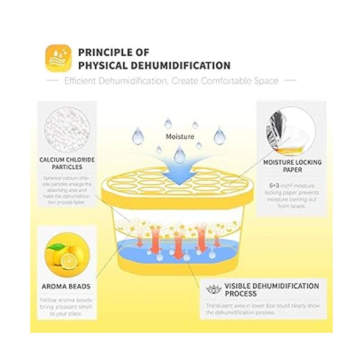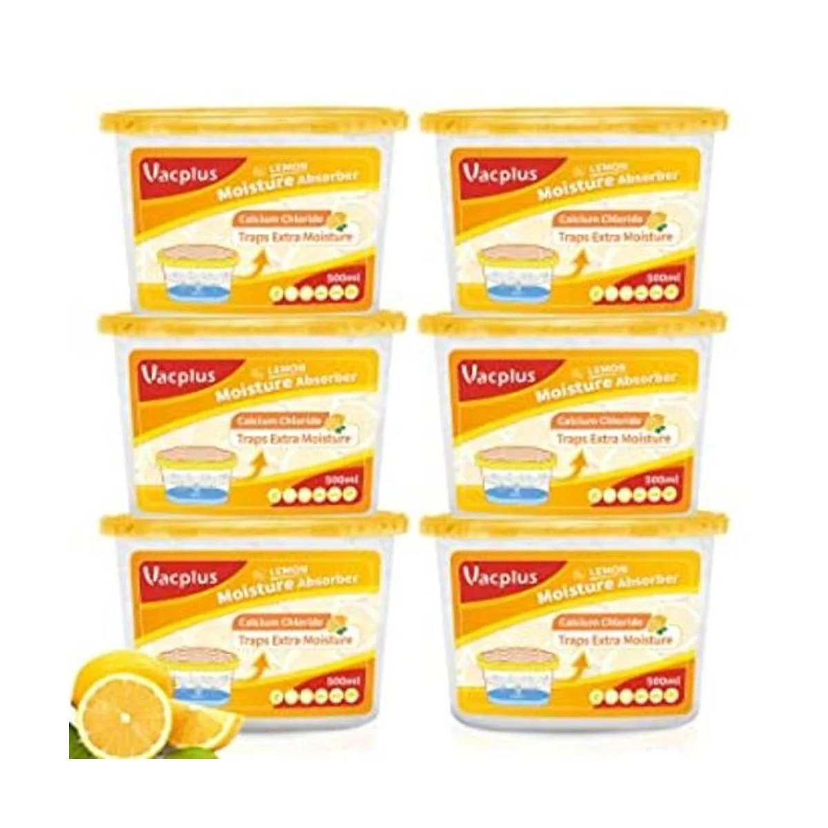 Cajas absorbentes de humedad 6 unidades, 10.5 onzas, absorción de humedad de fragancia de limón Vacplus, absorbente de humedad atrae humedad extra de tu baño, armario, cocina y estudio, deshumidificador para armario limón