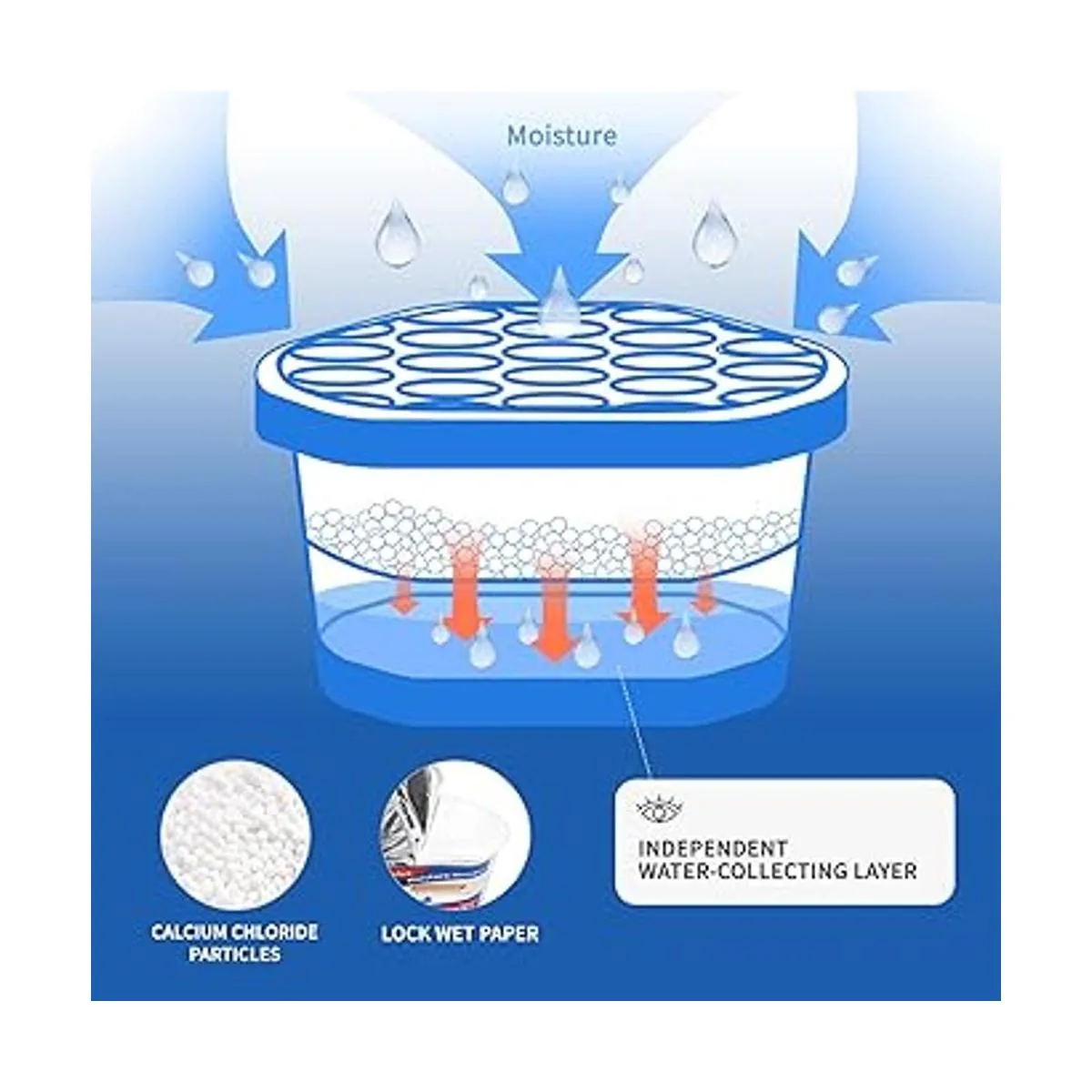 Efecto visible: el deshumidificador Vacplus tiene su propia capa independiente de recolección de agua. Puedes observar la absorción de agua del absorbente humidificador en cualquier momento.
