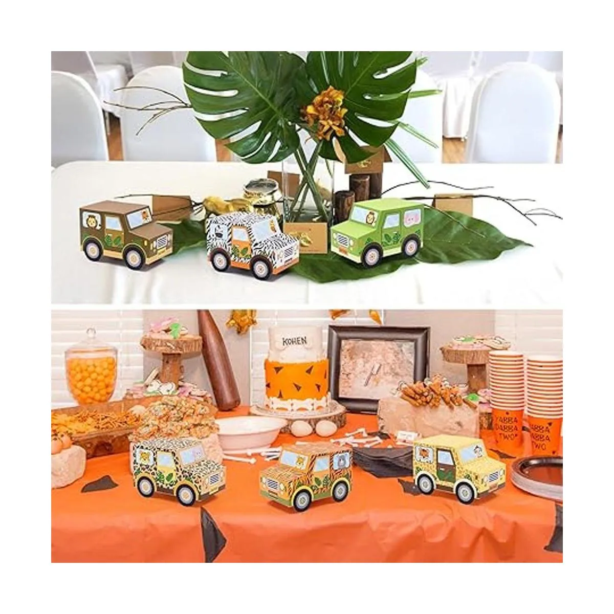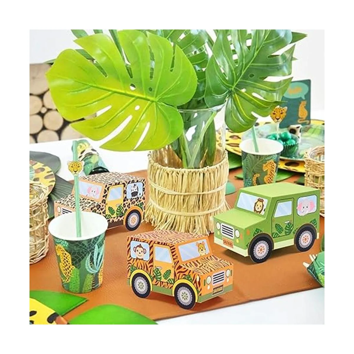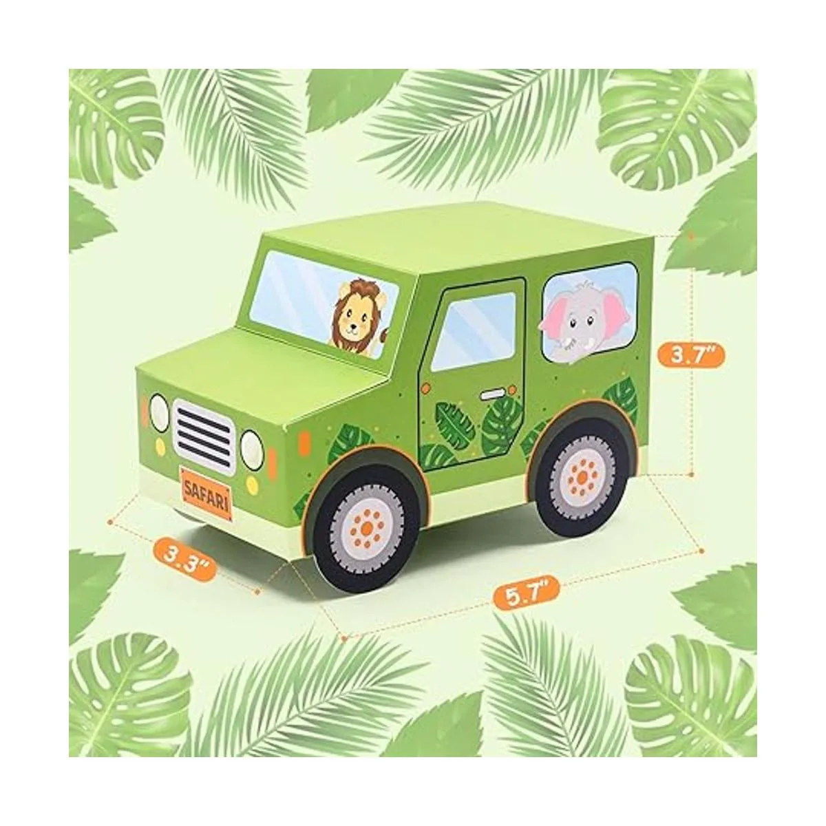 Cajas de recuerdos de fiesta de la selva, decoraciones de fiesta de safari, cajas de regalo en forma de camión para niños y niñas, feliz cumpleaños, baby shower, salvaje, una fiesta, cajas de regalo de dulces juego de 12