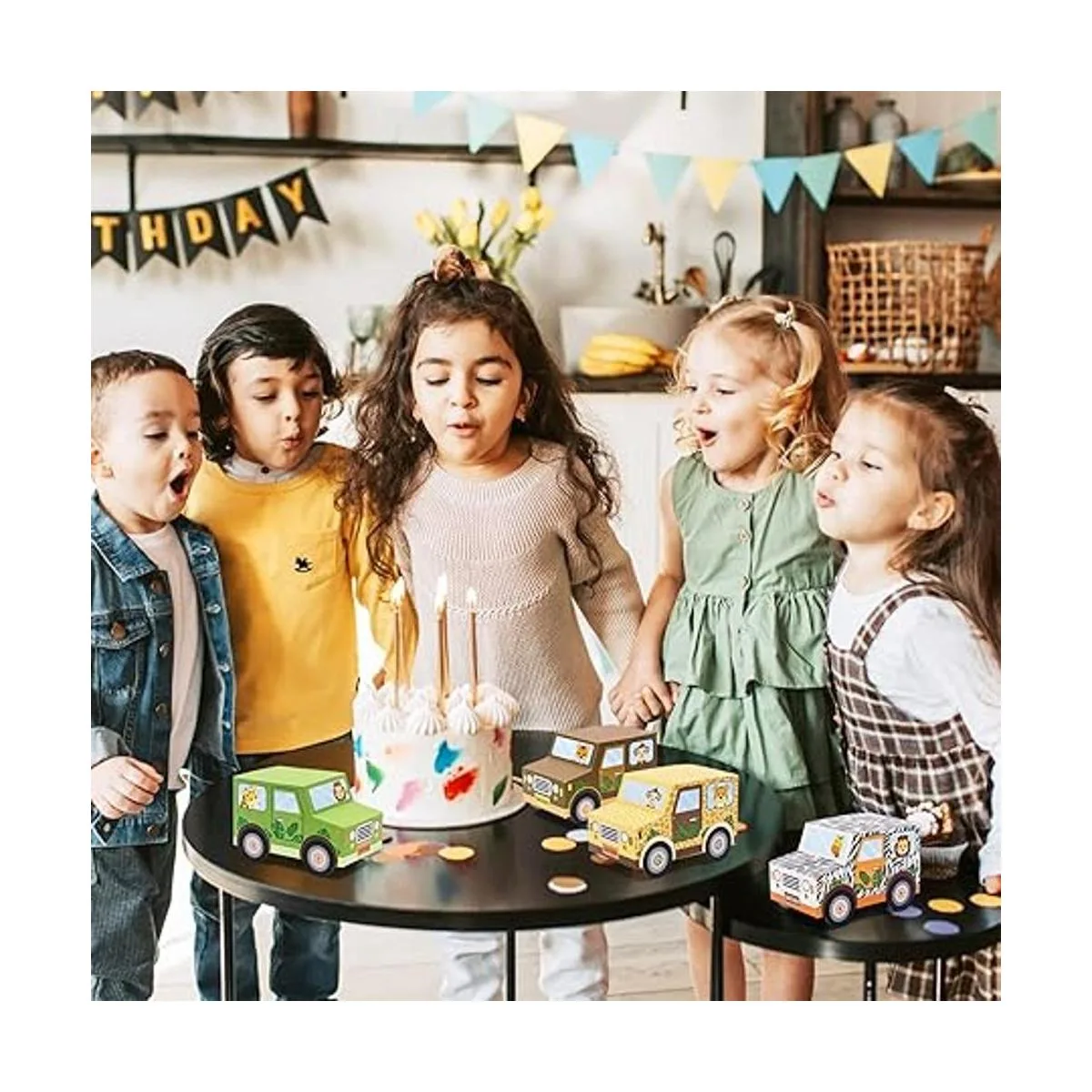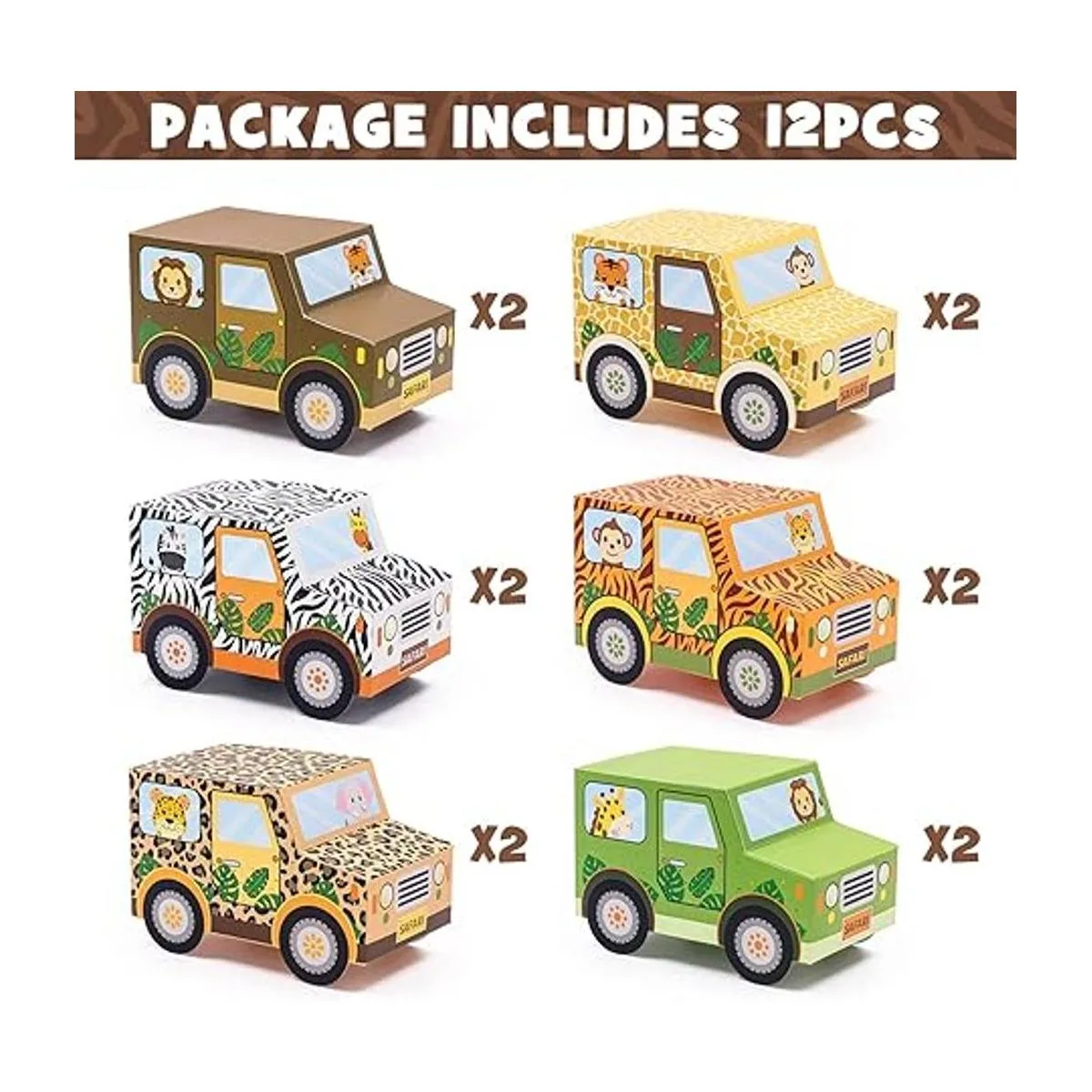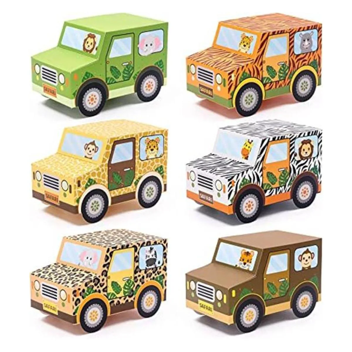 Cajas de recuerdos de fiesta de la selva, decoraciones de fiesta de safari, cajas de regalo en forma de camión para niños y niñas, feliz cumpleaños, baby shower, salvaje, una fiesta, cajas de regalo de dulces juego de 12