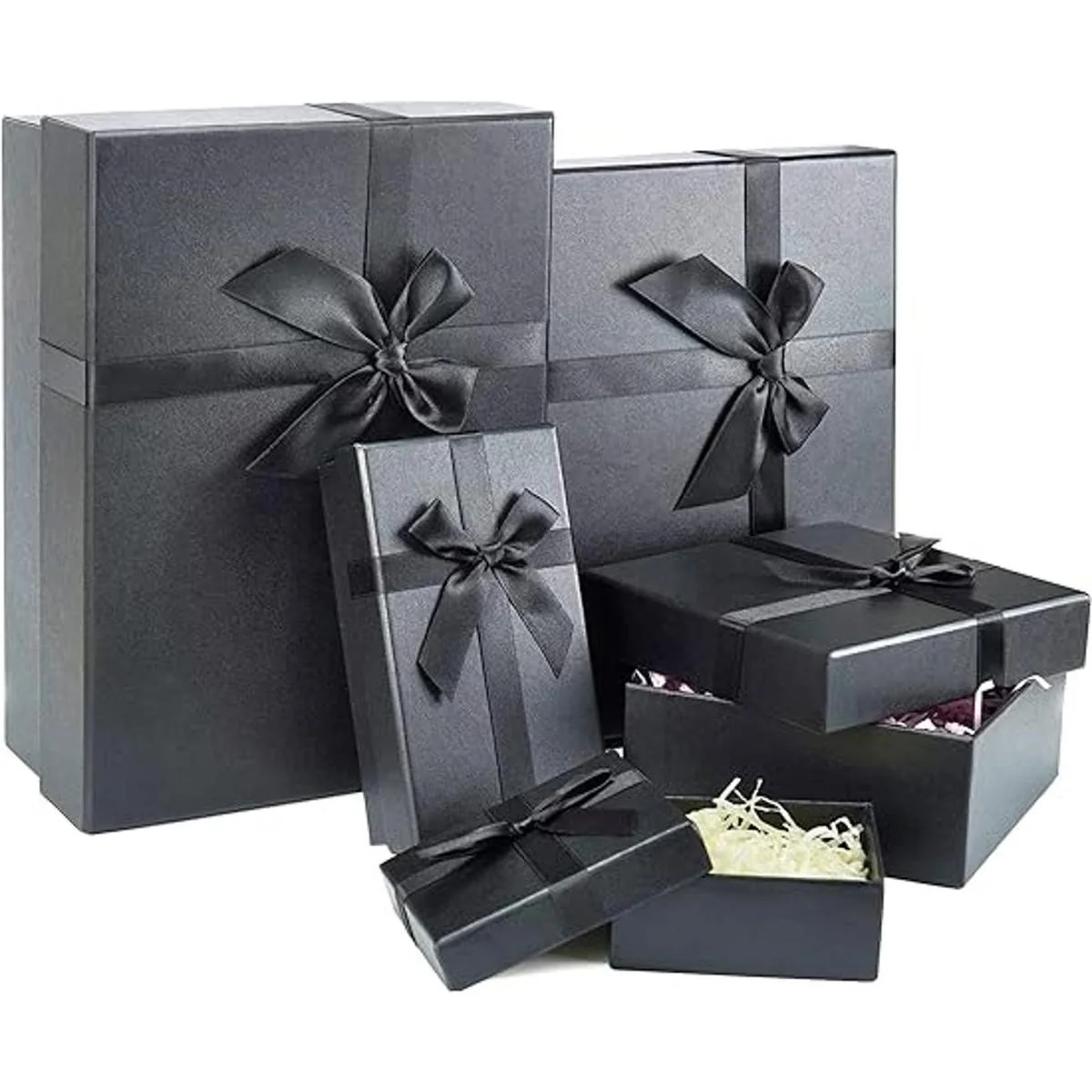 Cajas de regalo de varios tamaños para regalos: un juego de 5 cajas de regalo negras ver imágenes o descripciones del producto para obtener dimensiones detalladas. La caja perfecta para regalos de pequeño a grande, como joyas, cosméticos, dulces, decoración del hogar, juguetes, cerámica, cristalería, necesidades diarias, libros, productos digitales, etc. Diferentes tamaños de cajas de regalo para satisfacer tus diferentes necesidades.