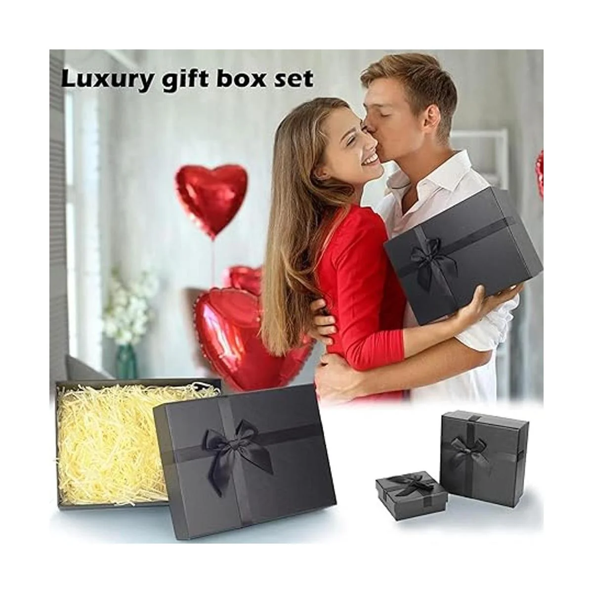 Cajas de regalo preenvueltas: a diferencia de las cajas de regalo magnéticas o cajas plegables, nuestras cajas de regalo de lujo están premontadas, puedes utilizar estas cajas de regalo negras directamente cuando las recibas. Nuestras cajas de regalo son hermosas y resistentes. Es hora de preparar una caja de regalo del día de San Valentín para tu señora