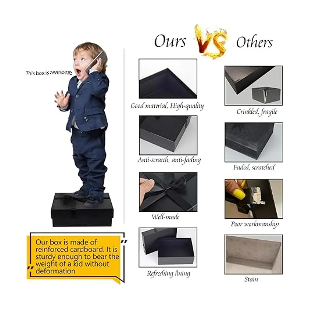 Caja de regalo negra de lujo para regalos: nuestra caja de regalo está hecha de cartón de alta calidad. Hemos reforzado la rigidez del cartón, hace que estas cajas de regalo vacías sean muy resistentes y duraderas, no hay necesidad de preocuparse por que la caja se apriete y deforme durante el envío.