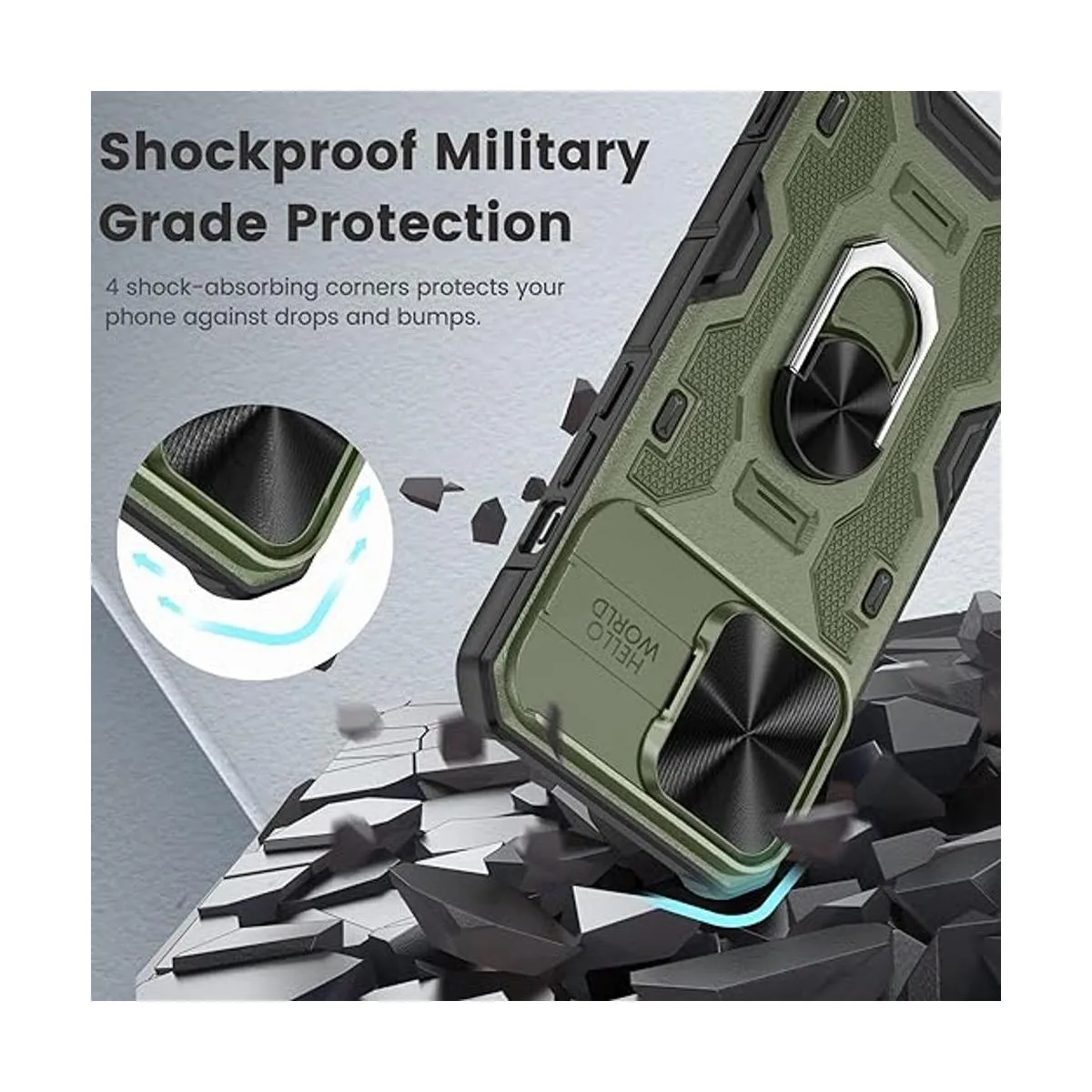 Caka Funda para iPhone 14 Pro, funda para iPhone 14 Pro con funda de cámara y soporte, soporte de anillo giratorio de 360 integrado para iPhone 14 Pro, color verde