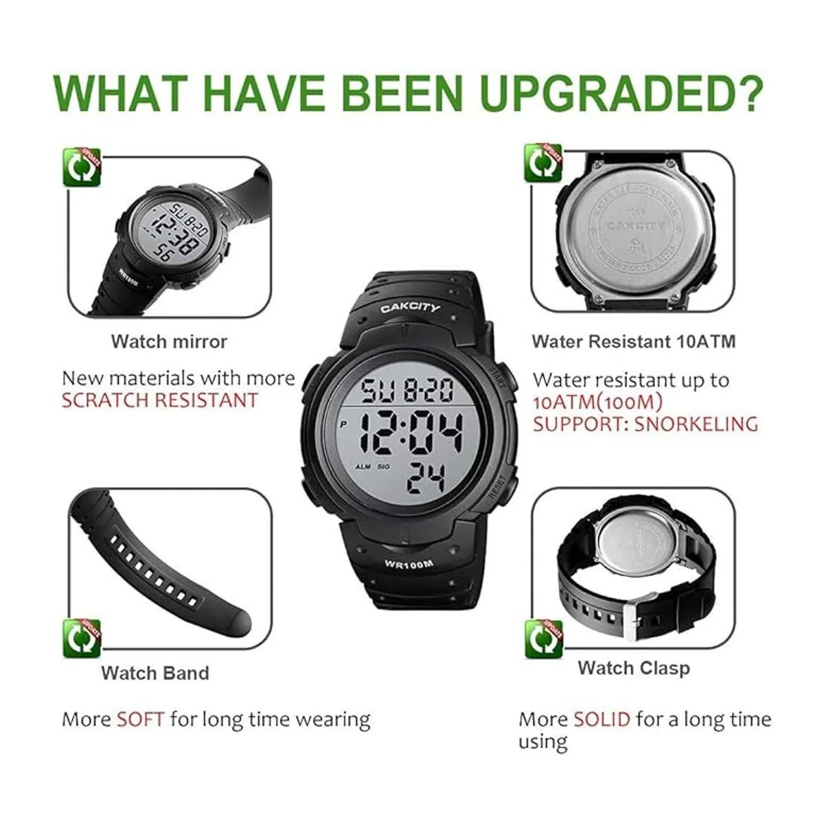 CakCity Relojes deportivos digitales para hombres impermeables 328.1 ft relojes de pulsera con alarma cronómetro LED gran pantalla
