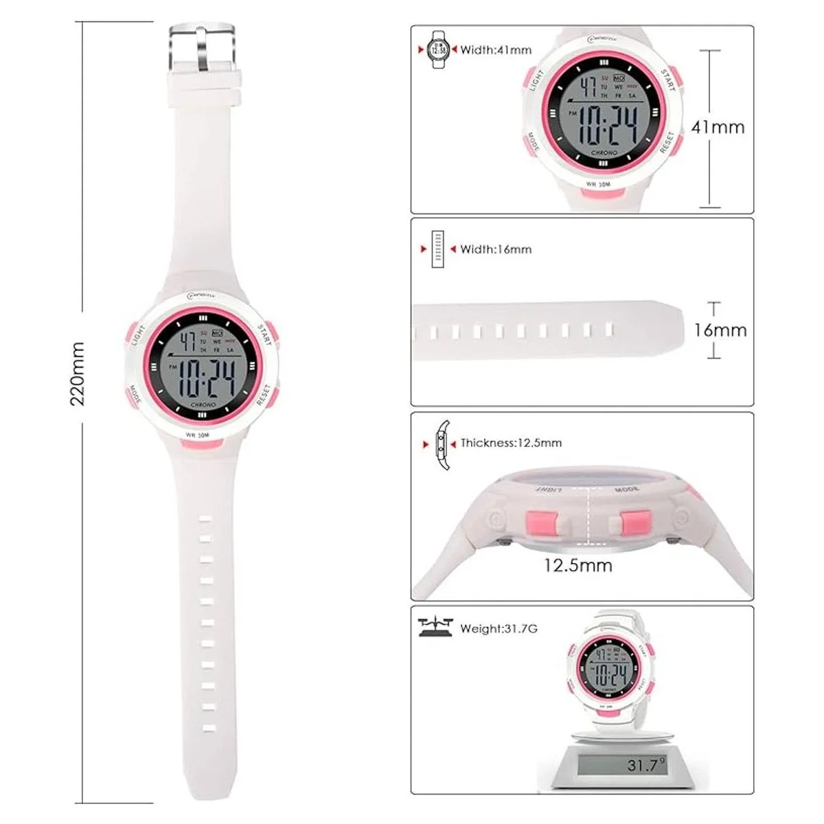 Multifunción: reloj despertador, cronómetro, resistente al agua hasta 98.4 ft, a prueba de golpes, calendario, retroiluminación EL, hora de 12 horas/24 horas, etc. Este reloj deportivo se adapta perfectamente a todo tipo de deportes y es adecuado para todas las ocasiones para niños y niñas.